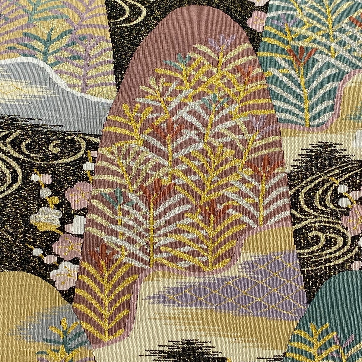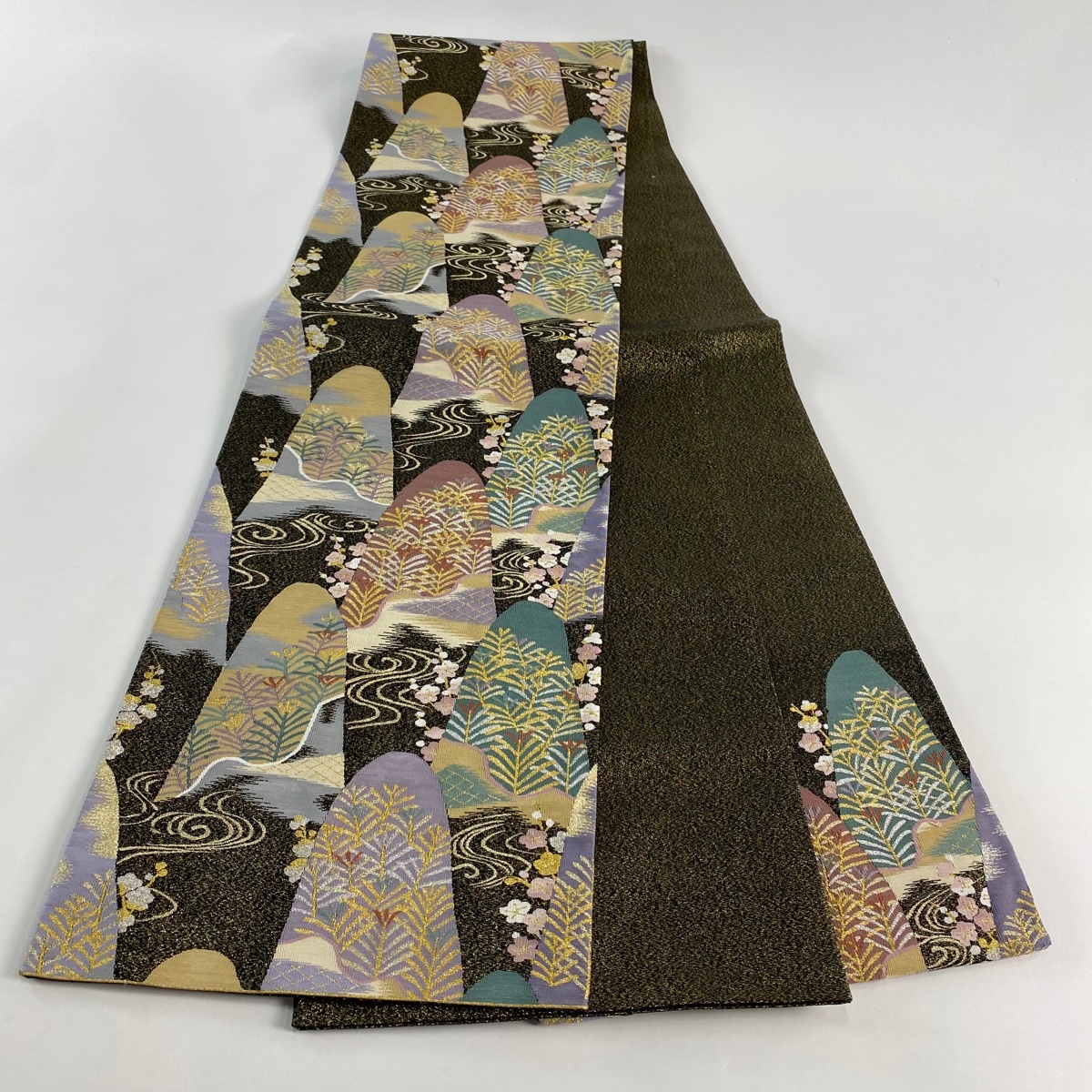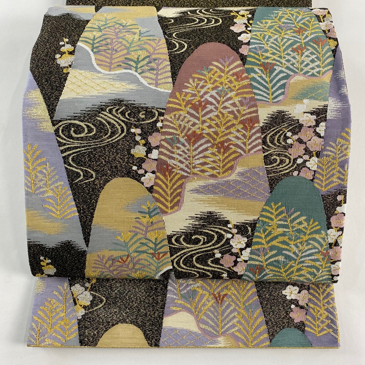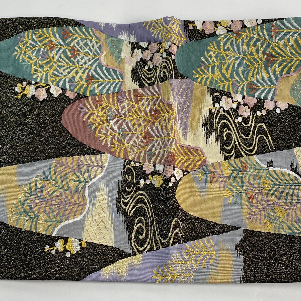 | 袋帯 美品 名品 松梅 流水 金銀糸 箔 墨色 お太鼓柄 正絹 【中古】 |