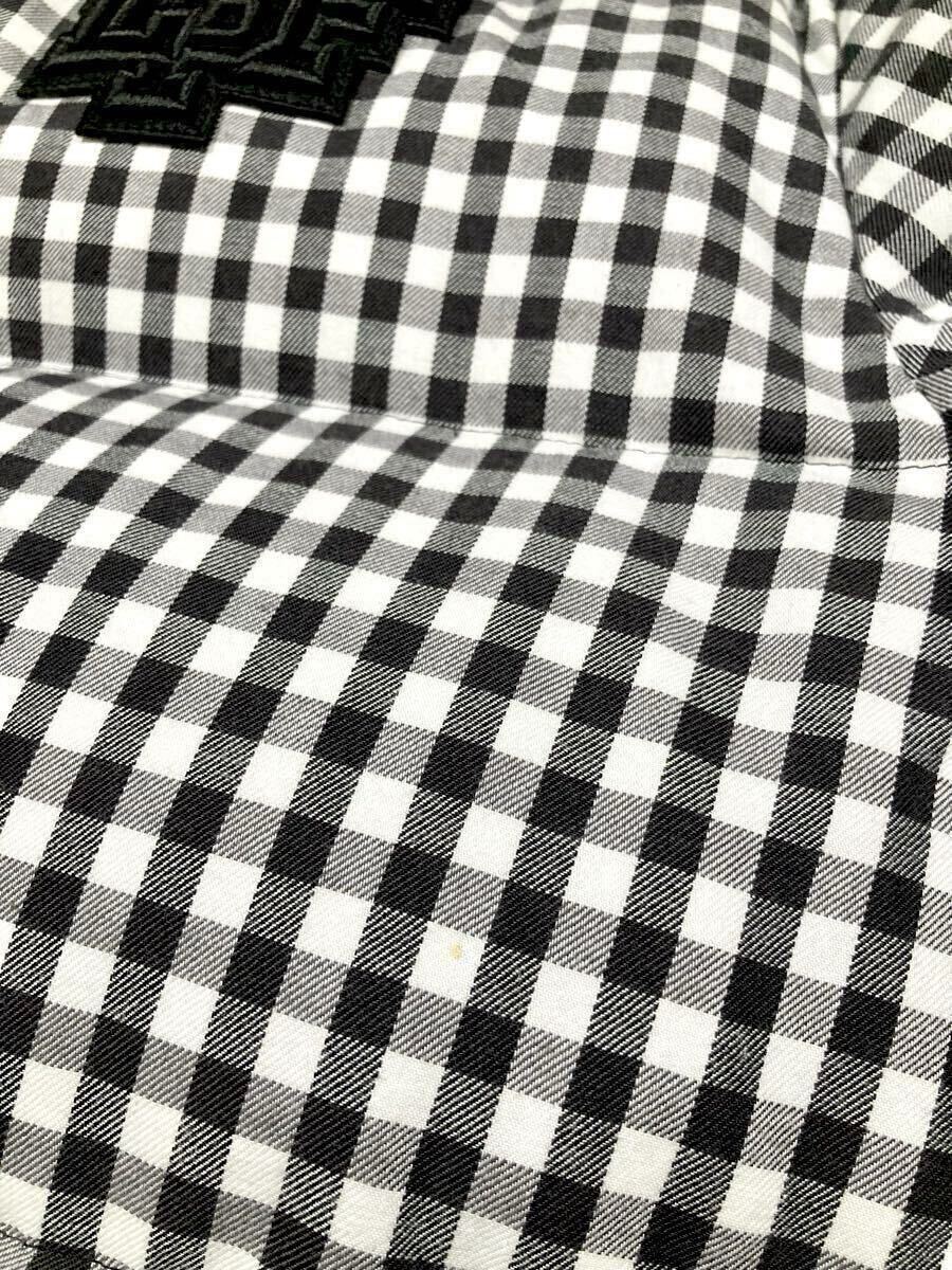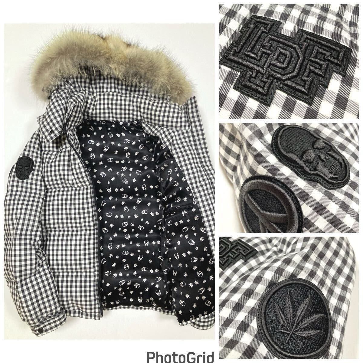 左胸と左右肩辺りに、ブランドのイニシャルの《LPF》、アイコンの《スカル》《ピースマーク》《マリファナ》の刺繍ワッペンが備え付けられています。