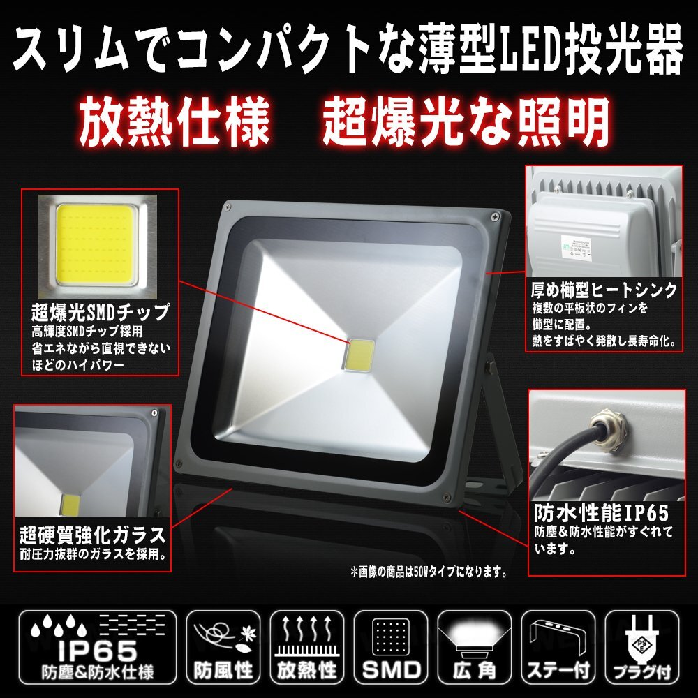 熱を逃しやすいアルミ合金 と放熱フインでさらに長寿命化! 100WハイパワーLEDを搭載で、衝撃的な明るさを実現しました。 照射角約120°で広範囲を照らします! 照射面に強化ガラスを使用し、長期間の使用でもクリアな光を照射します。 ■商品仕様 ■商品内容 ★注意事項 |