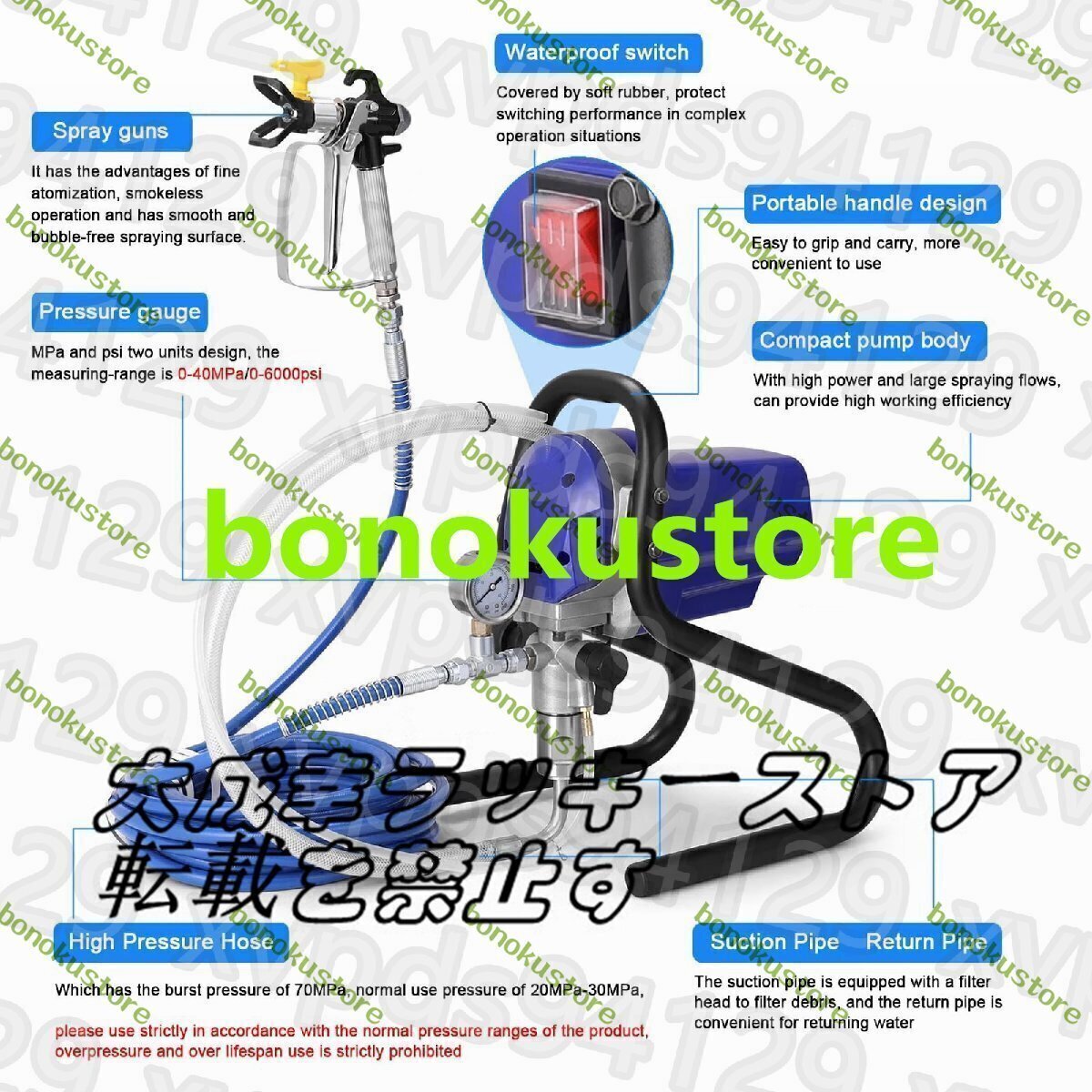 商品説明 商品説明 【優れた性能】塗料を高圧ホースを通してスプレーガンに輸送し、圧力を解放して霧化を実現し、壁面に滑らかで緻密な塗装を形成します。この方法は空気霧化を必要としないため、分散が少なく、利用率が高く、接着効果が良好です。 【調整可能な圧力】調整可
