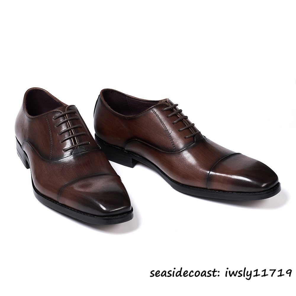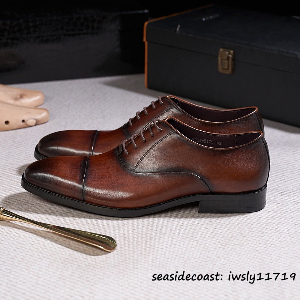 極美品★定価10万超 ビジネスシューズ メンズ 本革 レザーシューズ 職人手作り 紳士靴 牛革革靴 冠婚葬祭 フォーマル 宴会 ブラウン 26.0cm