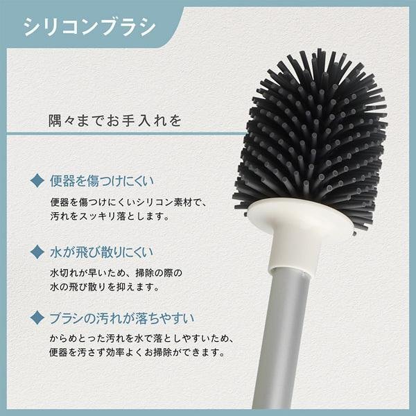 シリコン製のブラシだから便器を傷をつけにくく、隅々まで汚れを落す!
