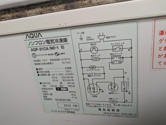 冷凍庫 AQUA AQFー21CAー1型 ノンフロン冷凍庫 205L *FU281