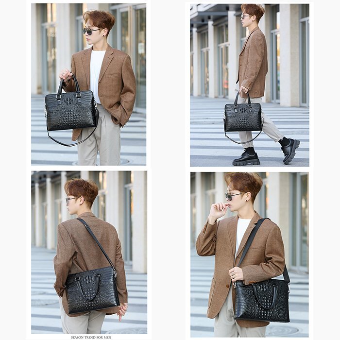 高品質牛革ブリーフケース 2WAY 肩掛け フォーマル クロコダイル柄本革ハンドバッグ・ブリーフケースメンズ