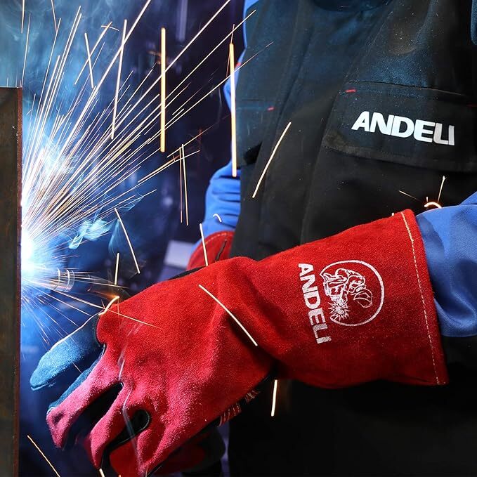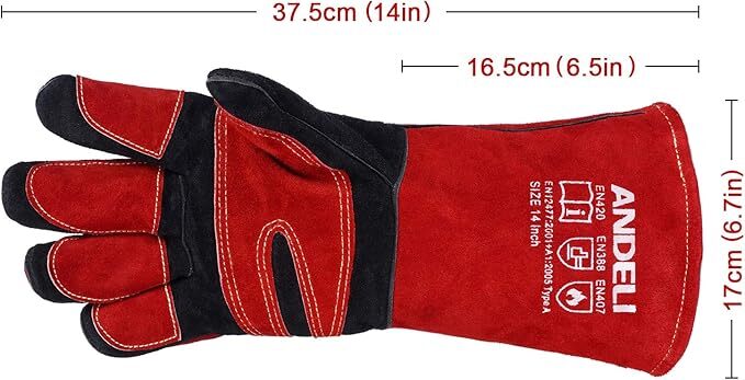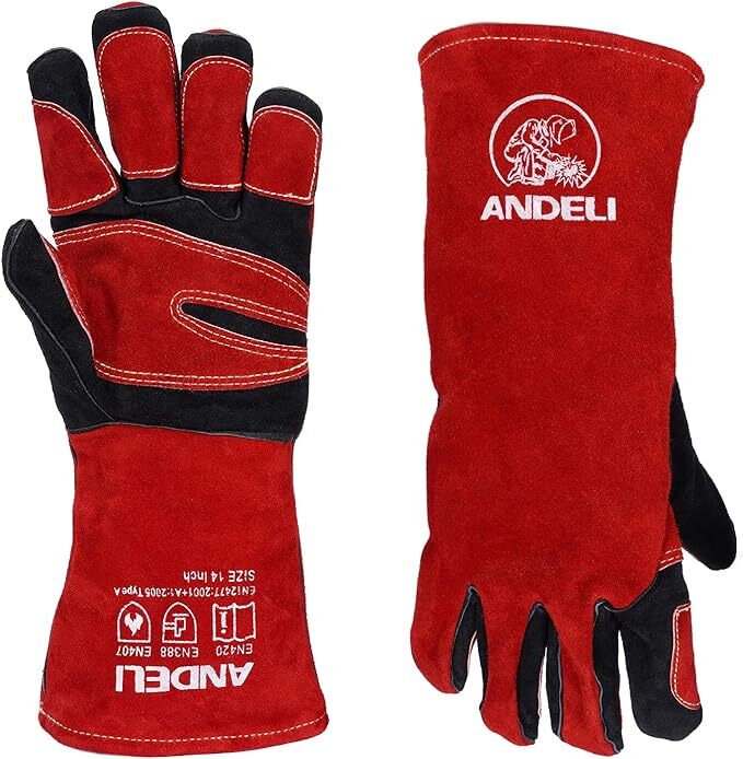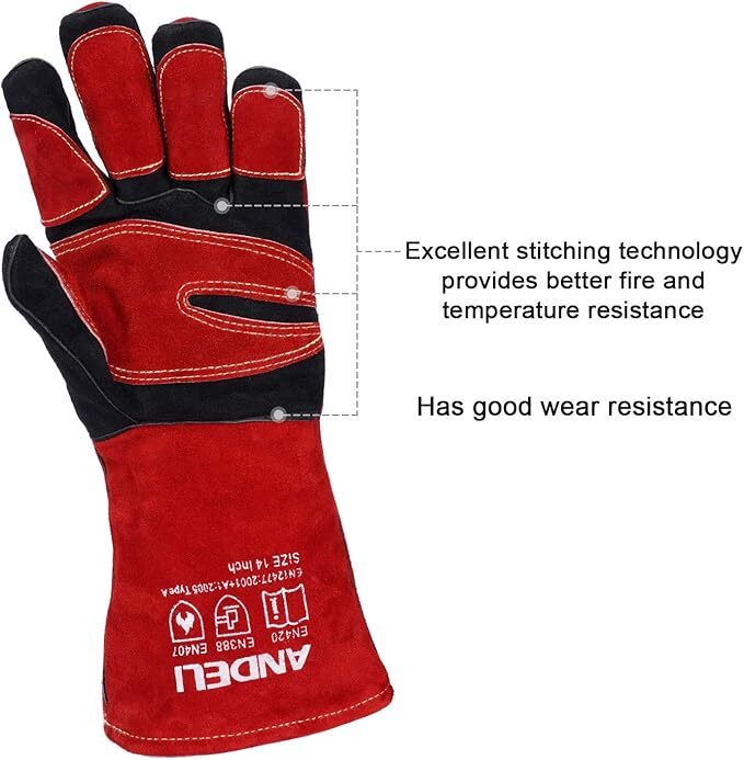 ANDELI 溶接手袋 耐熱グローブ レザー MIGグローブ 厚手で柔らかく 耐熱性に 二重牛革グローブ 溶接作業用 鍋つかみ 焚き火台