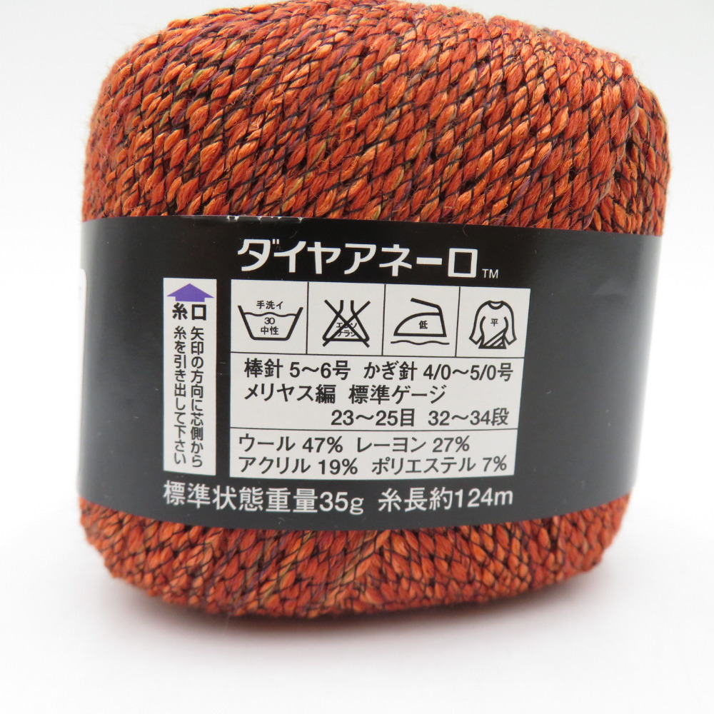 | ダイヤモンド毛糸 毛糸 ダイヤアネーロ 6玉セット 703番色 オレンジ 1玉35g巻 約124m メランジカラー ウール レーヨン 秋冬 未使用品 |