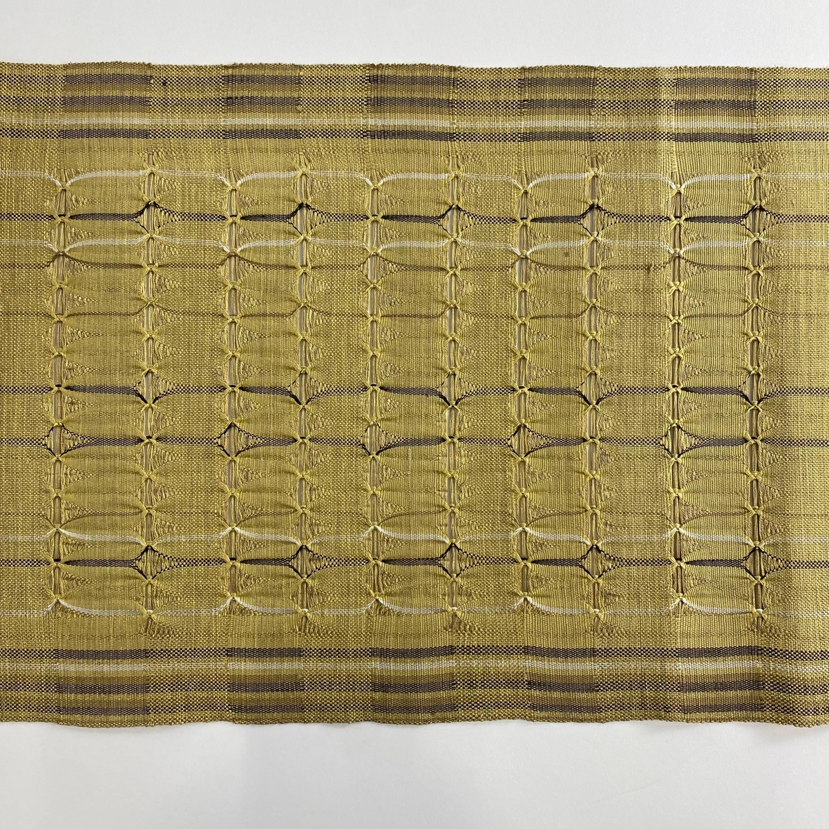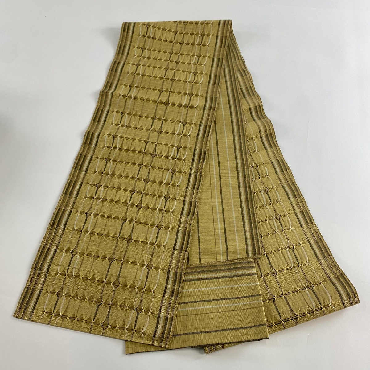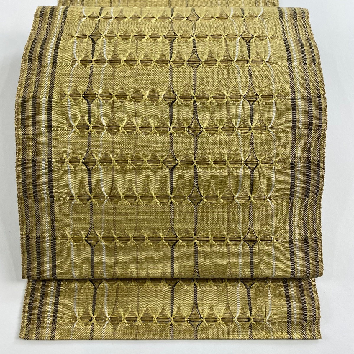 | 名古屋帯 美品 秀品 八寸名古屋帯 松葉仕立て 幾何学模様 金糸 薄黄土色 正絹 【中古】 |