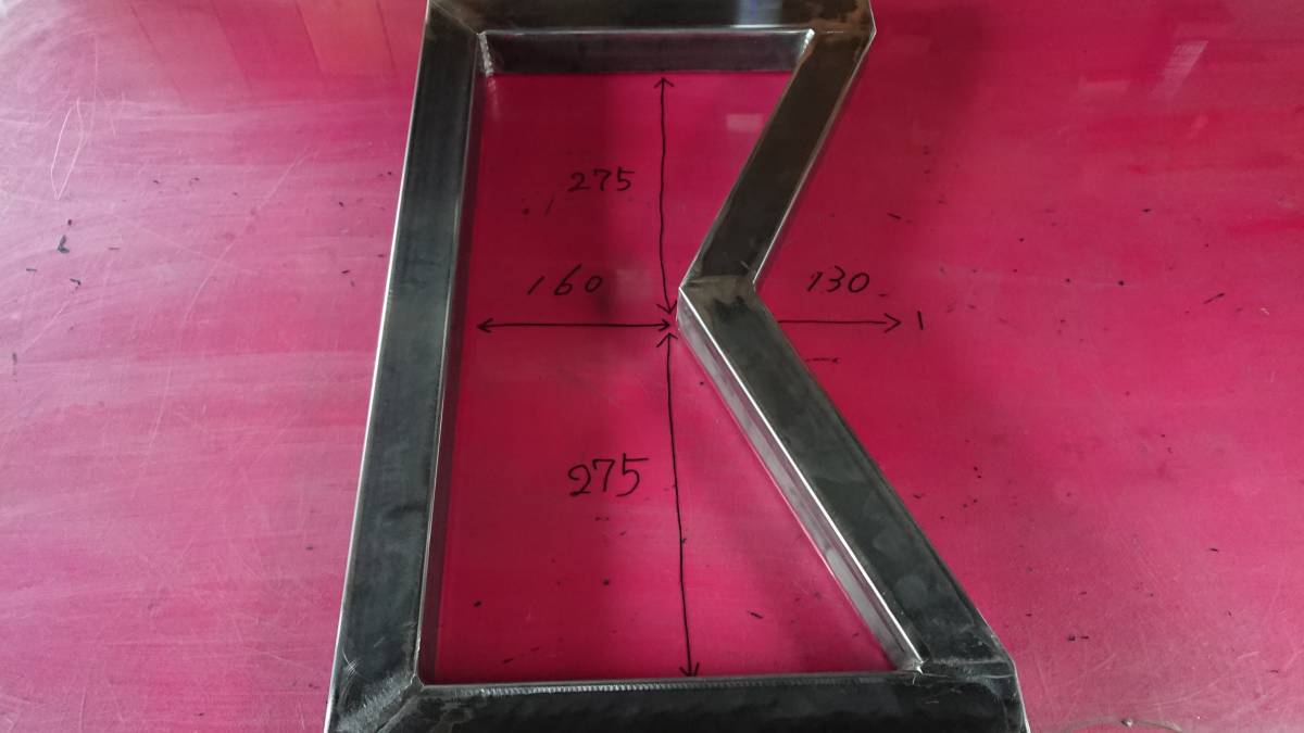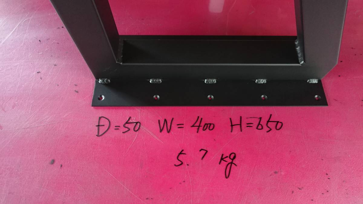 フレーム部:1.6mm×50mm×50mm 角パイプ(スチール) ・ 天板受け:2.3mm 鉄板
