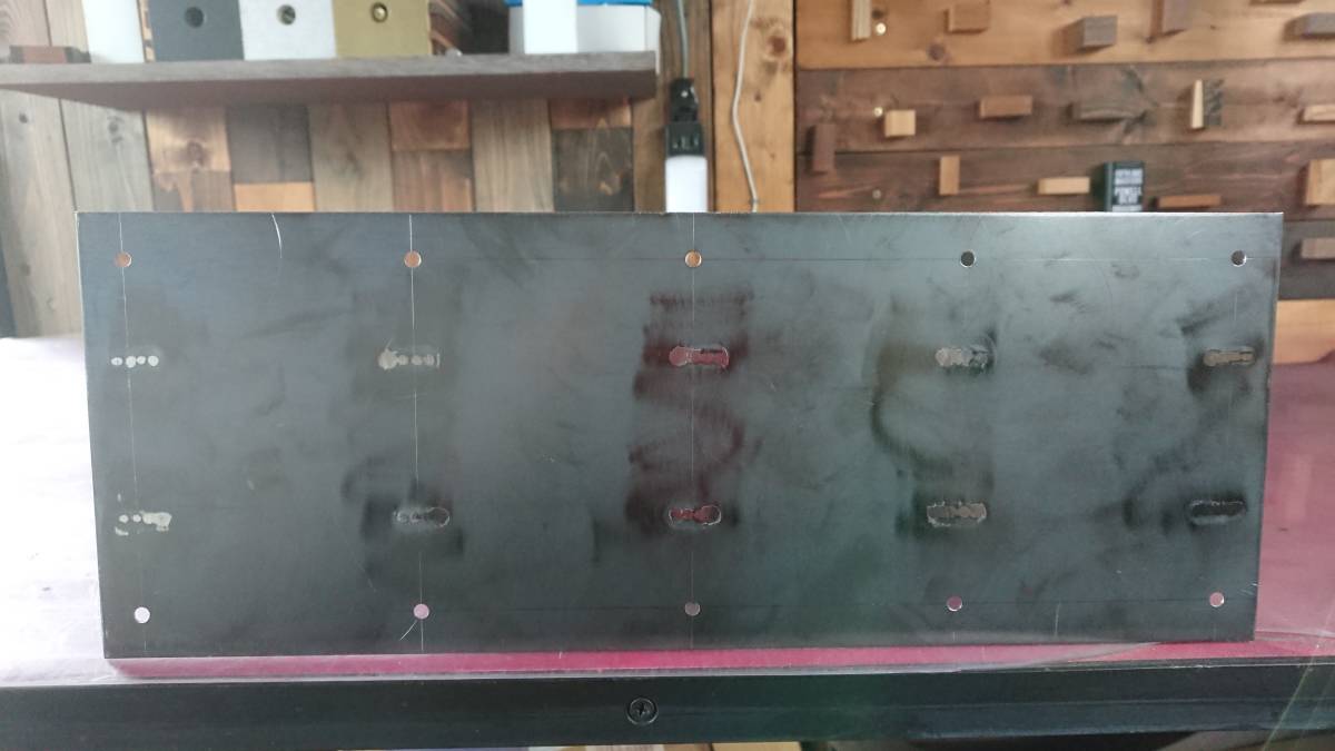 天板受けに10本のビス穴(φ5mm)を開けて皿モミ(φ10mm)加工を施しております。マット仕上げですのでとても落ち着いた風合いです。