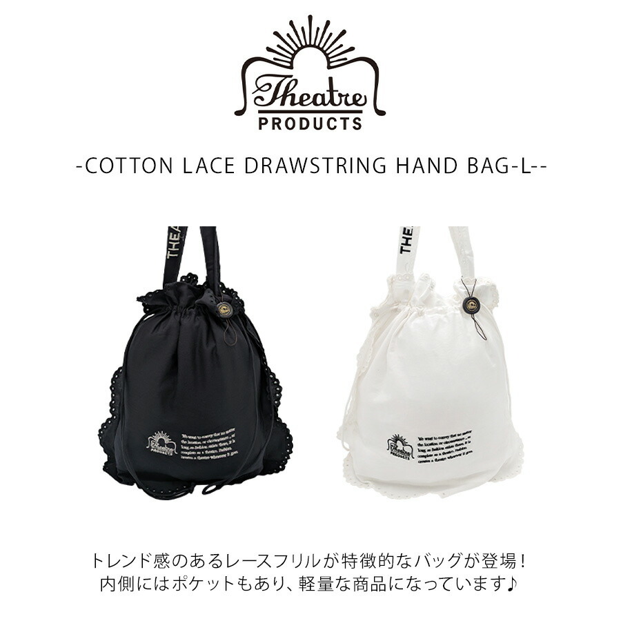 | 商品名 | CL240855【01.ブラック】COTTON LACE DRAWSTRING HAND BAG-L- [THEATRE PRODUCTS][シアタープロダクツ] |