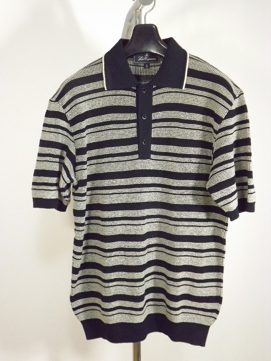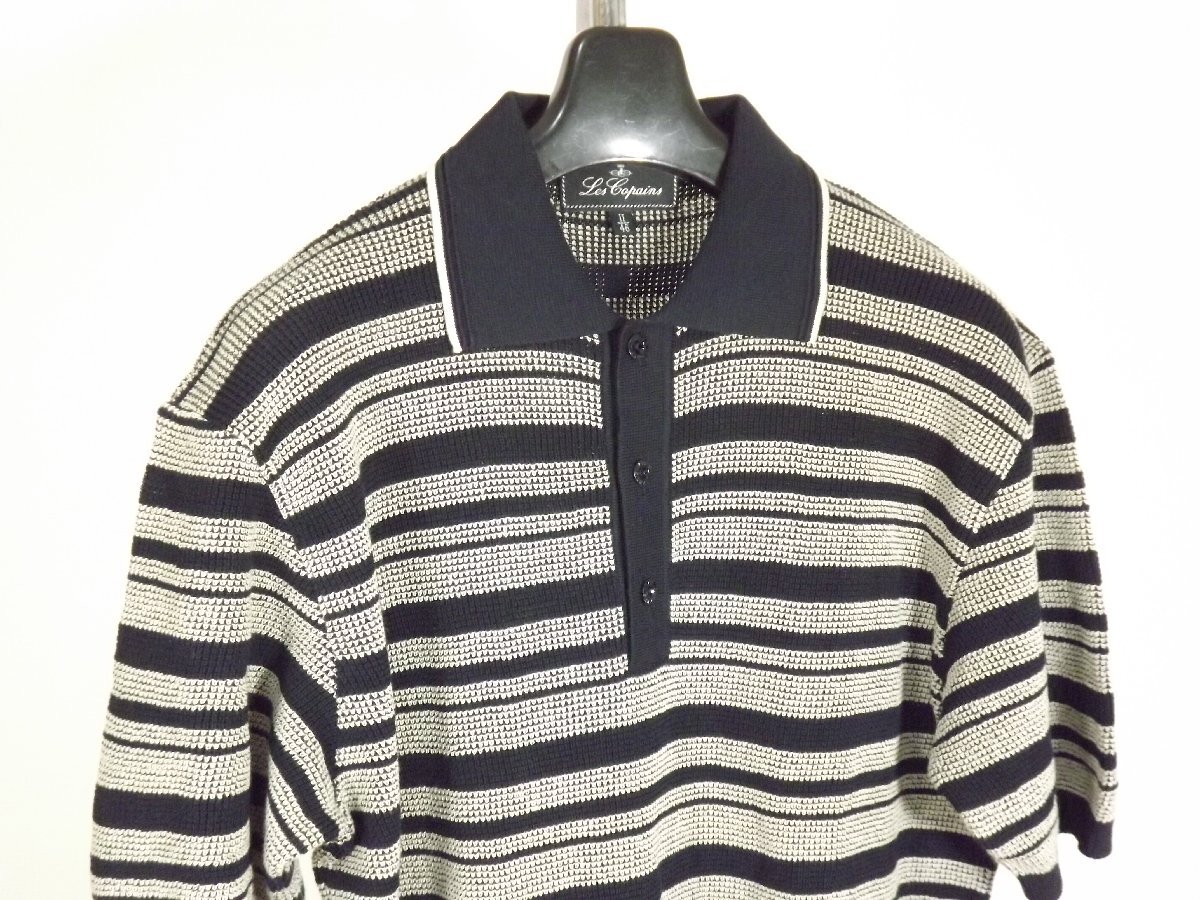 LES COPAINS (レ コパン) イタリア製 ヴィンテージ加工 コットンニット ボーダー ポロシャツ メンズ46(大きめS) 送料無料