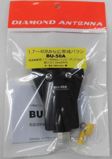 | BU50A 1.7~40MHz 広帯域バラン 広帯域バラン ●重量:110g ●周波数:1.7~40MHz●インピーダンス:50Ω(1:1)●耐入力:1.2KW(PEP)●接栓:M-J ●完全モールド構造。防水性も万全です。 | |||