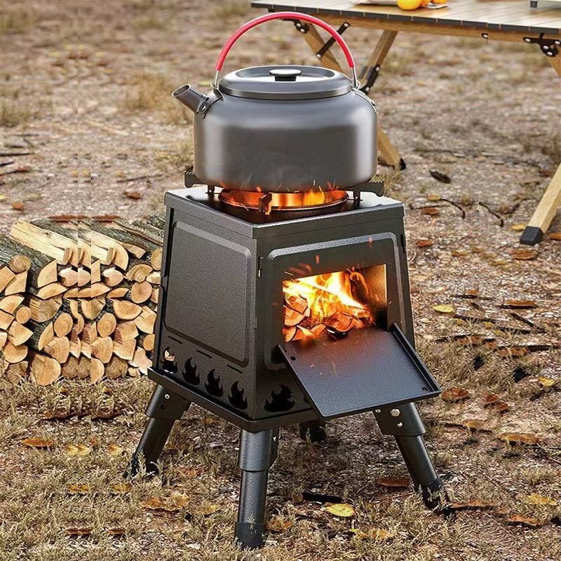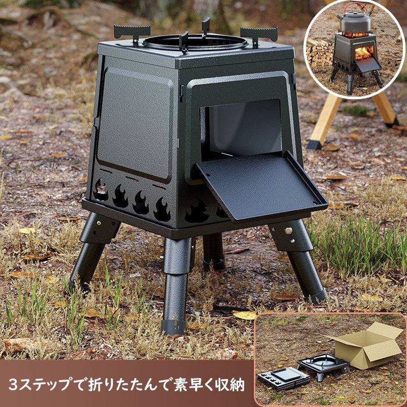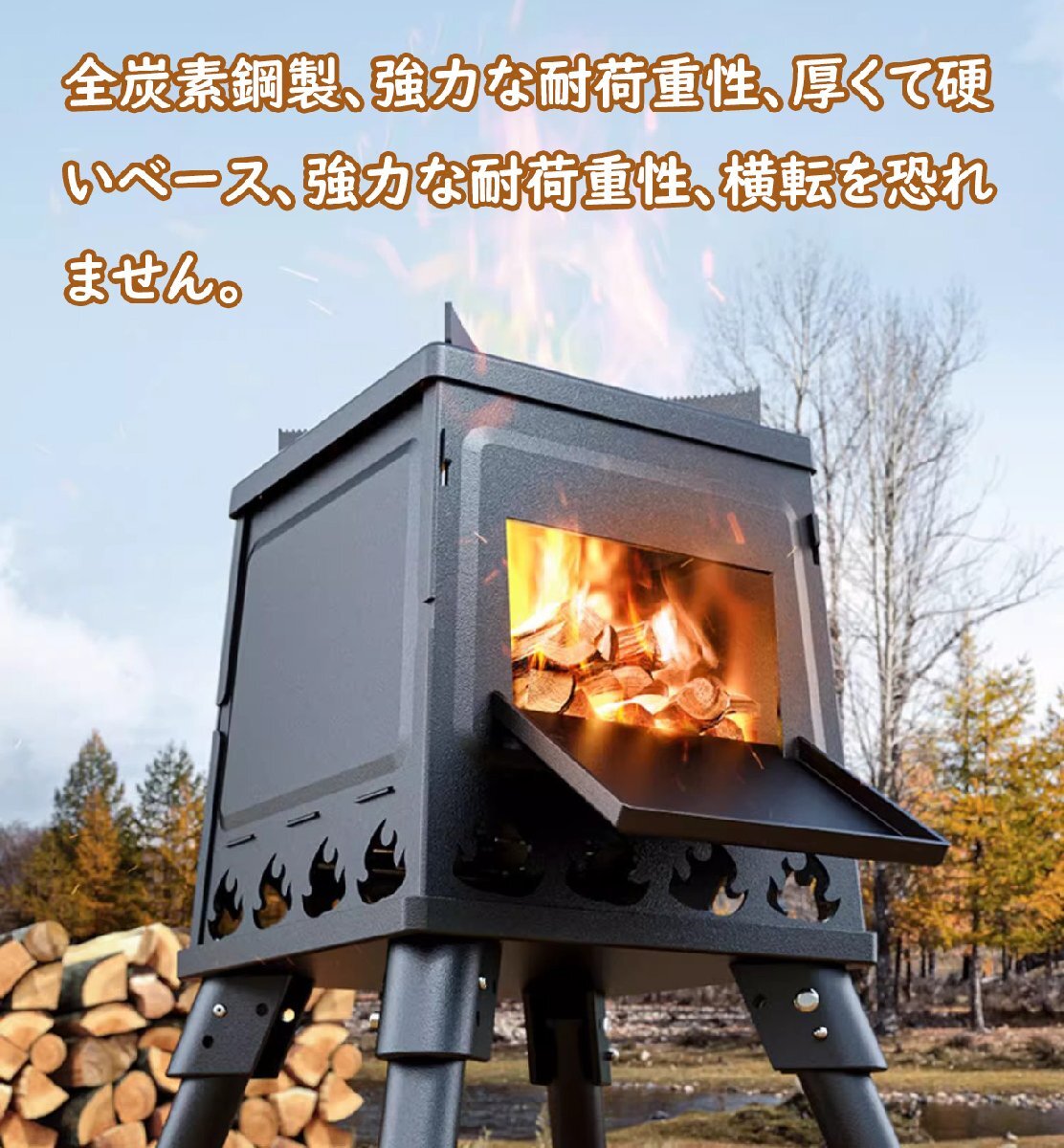 ★屋外用薪ストーブ、ポータブルで折りたたみ可能な炭素鋼製薪ストーブ、折りたたみ可能で3秒で保管でき、移動が簡単です。