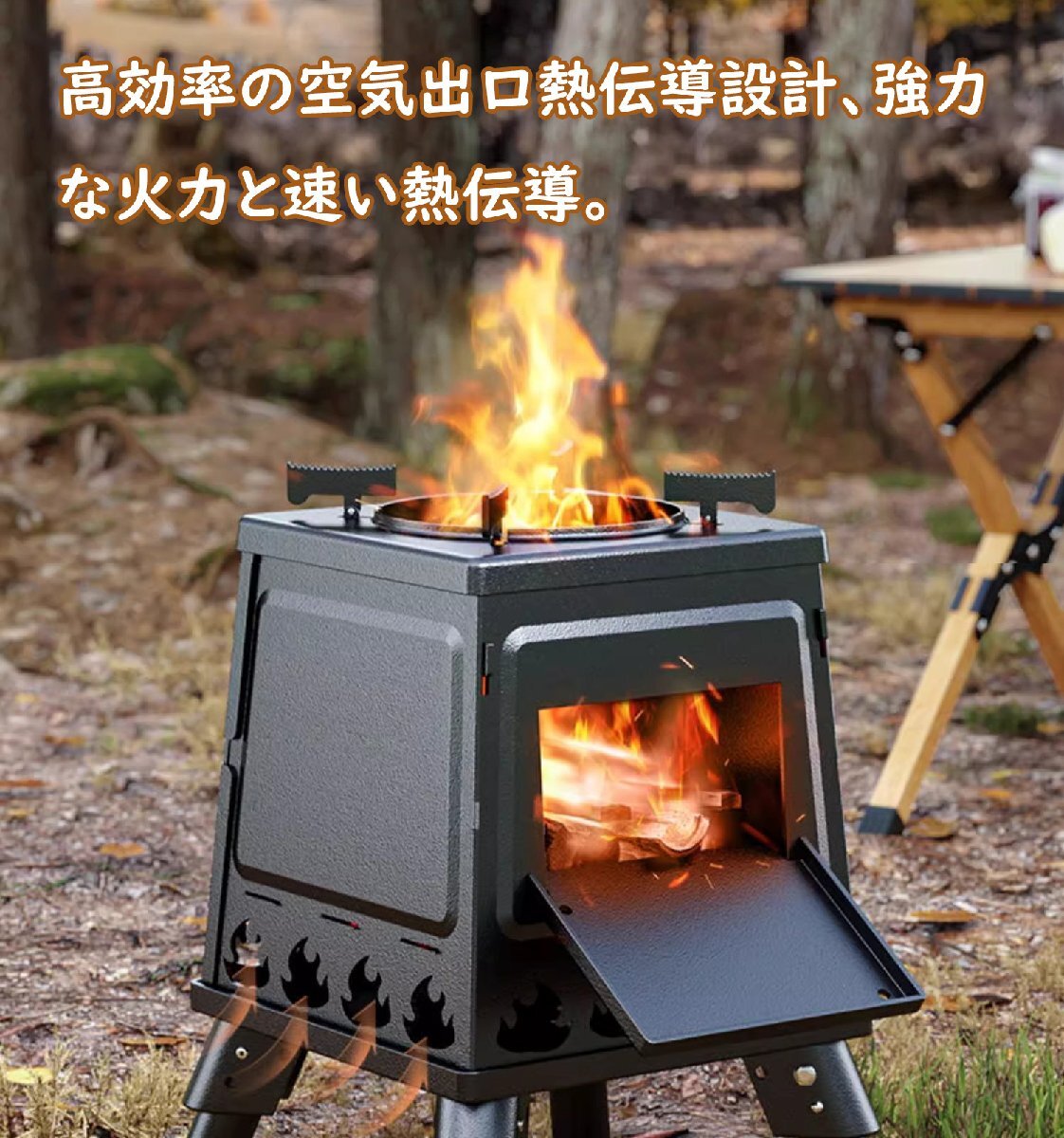 薪ストーブ 二次燃焼 キャンプ アウトドア 組み立て簡単 折り畳み ポータブル 高効率 小型 ソロストーブ 超軽量 hw1122