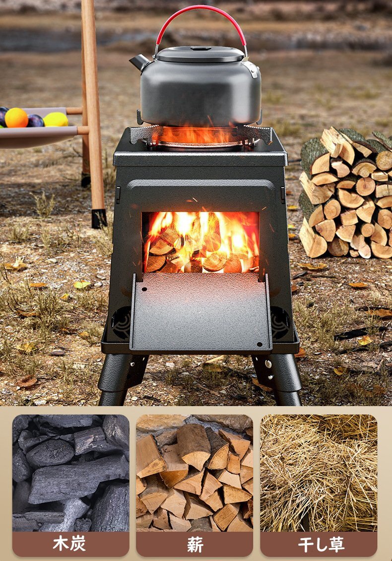 ★薪ストーブはアウトドアでも大活躍。このストーブはさまざまなものを燃料として使用できるため、通常燃料を保管するために必要なスペースを節約し、バックパックの収納スペースを大幅に増やすことができます。