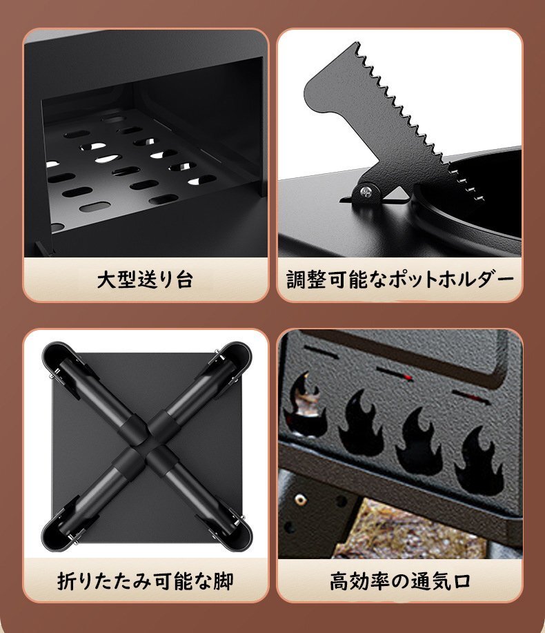 ★薪を追加するのに十分な開口部を設計し、火が持続するように設計されています。