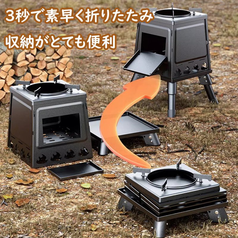 薪ストーブ 二次燃焼 キャンプ アウトドア 組み立て簡単 折り畳み ポータブル 高効率 小型 ソロストーブ 超軽量