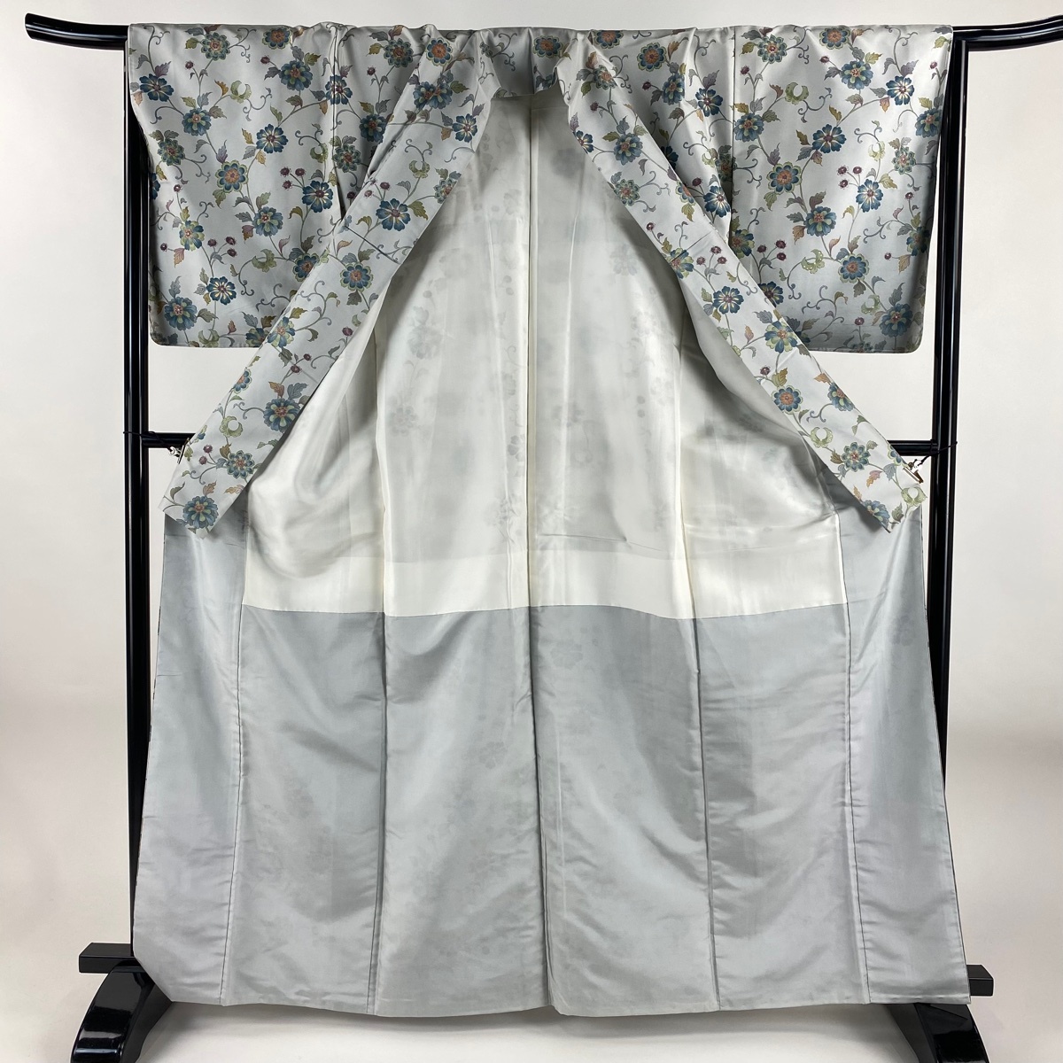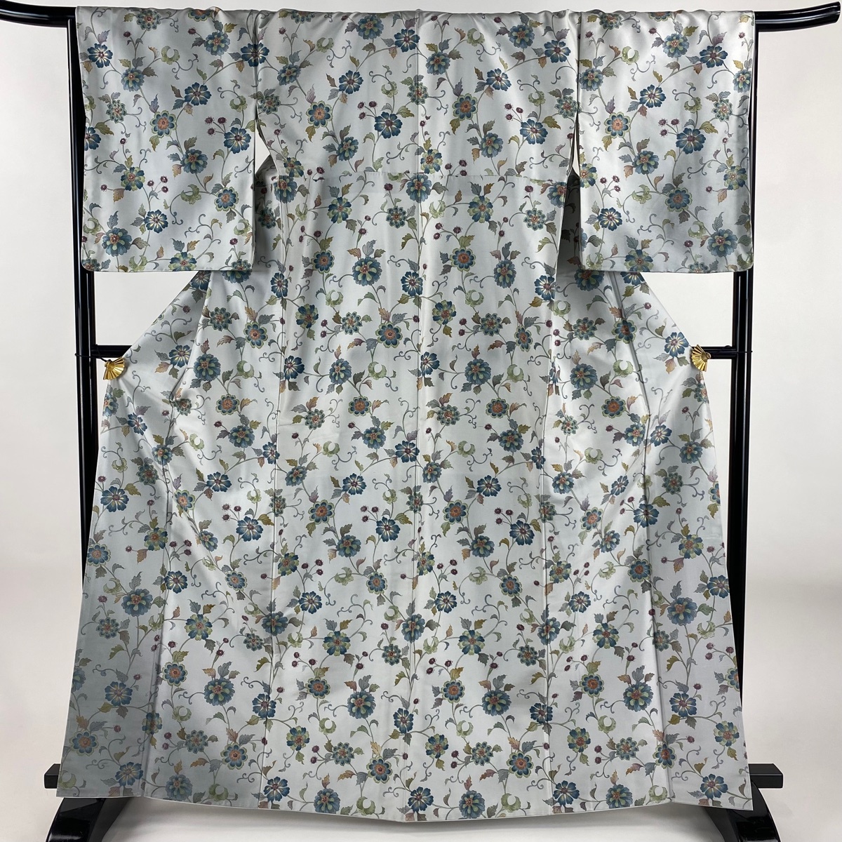 | 付下げ 秀品 紬地 袋帯セット 花唐草 金彩 青灰色 袷 身丈163.5 裄丈67.5 L 正絹 【中古】 |