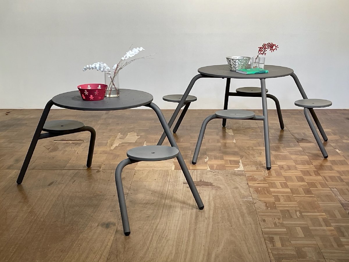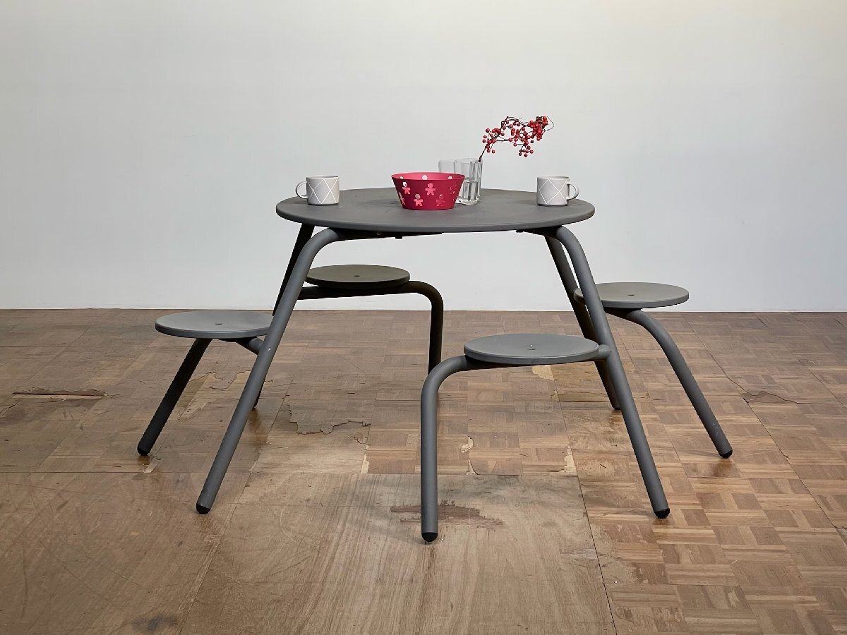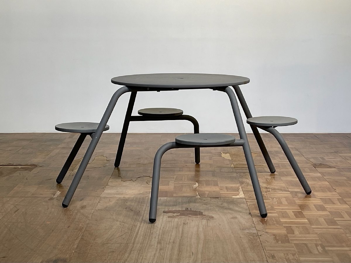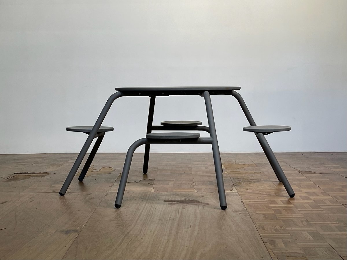 居住空間の極小化という世界的なムーブメントに向けた屋内外をシームレスに規律するデザインで世界的ヒットとして君臨する、" tools for togetherness / 集うためのツール" 、テーブル / チェア一体のコンパクトピクニックテーブル。extremis より。