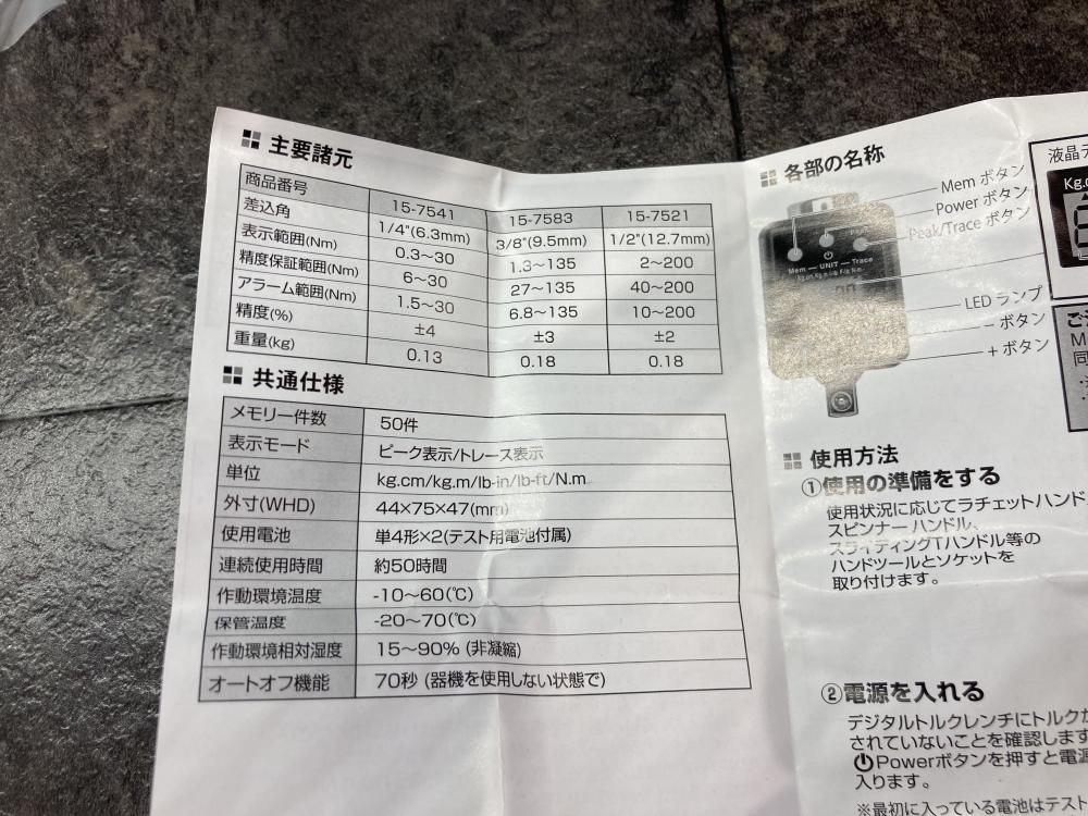 STRAIGHT ■商品名 1/4トルクレンチアダプター デジタル式 ■型番 Art.15-7541 |