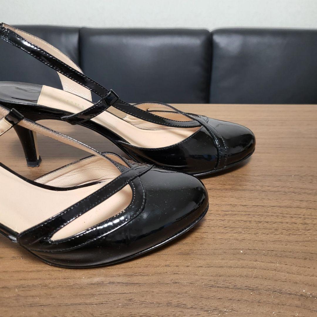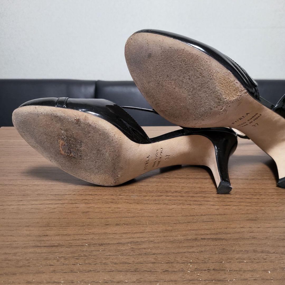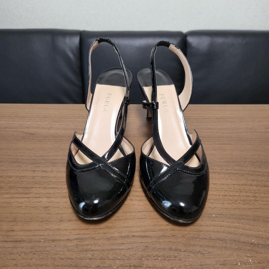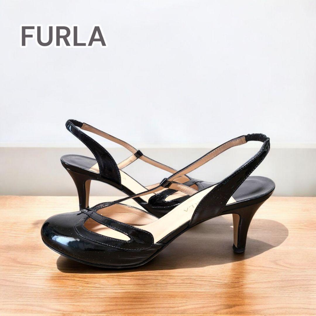 FURLA(フルラ)のエレガントなブラックパテントサンダルパンプスです。