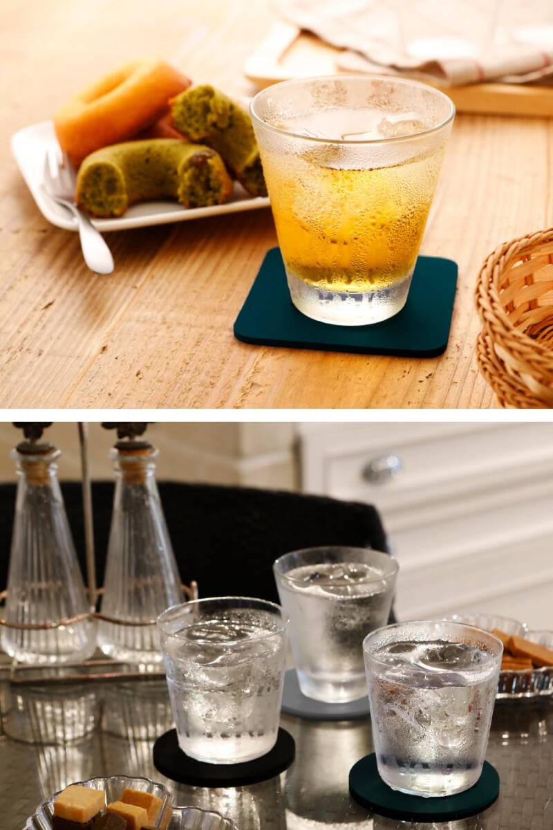 説明 ●コップに付いた水滴をグングン吸収する、柔らかな超吸水コースターです。 ●コップの裏についた水滴や、しずくをまたたく間に吸収します。 ●絞れば吸水力が復活し、何度でもすぐに使用する事が出来ます。 ●柔らかくクッション性があるため、落としても割れず、コップを置くときに音が鳴りません。 ●表と裏、両面使用する事が出来ます。 ●耐熱温度100℃。温かいお飲み物でもお使いいただけます。