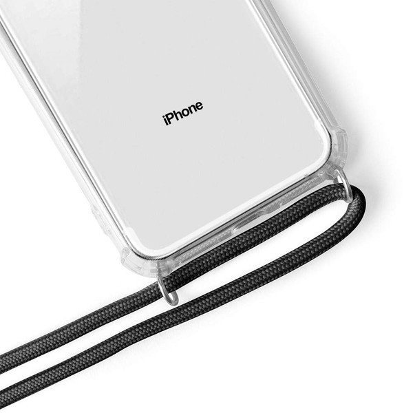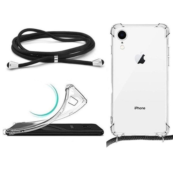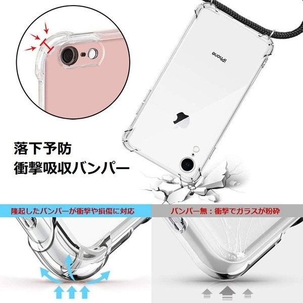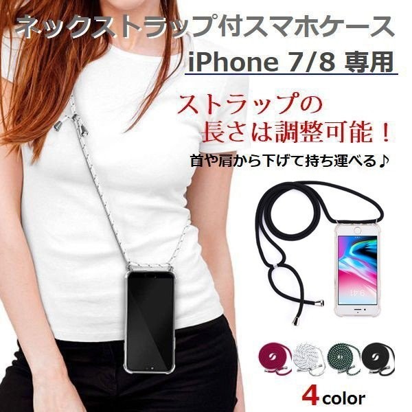 iphone 7・8 専用 ソフトケース ネックストラップ セット 肩掛け 首掛け 長さ調整 可能 紛失防止 落下防止 iPhone アイフォン (ブラック)