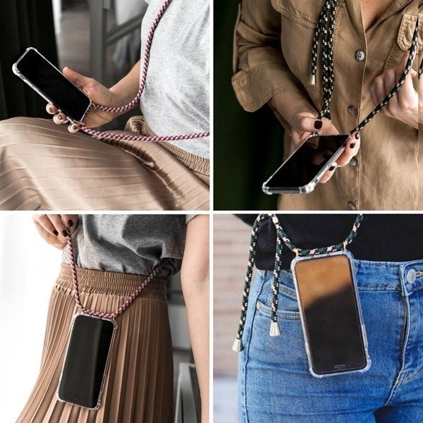 〇スマホがファッションアイテムに! ケースには首から下げられるようにストラップが付いており、まるでアクセサリーのようにスマホを着用できます。わざわざバッグから出す手間がなくメッセージやSNSをチェックできてとっても便利です。