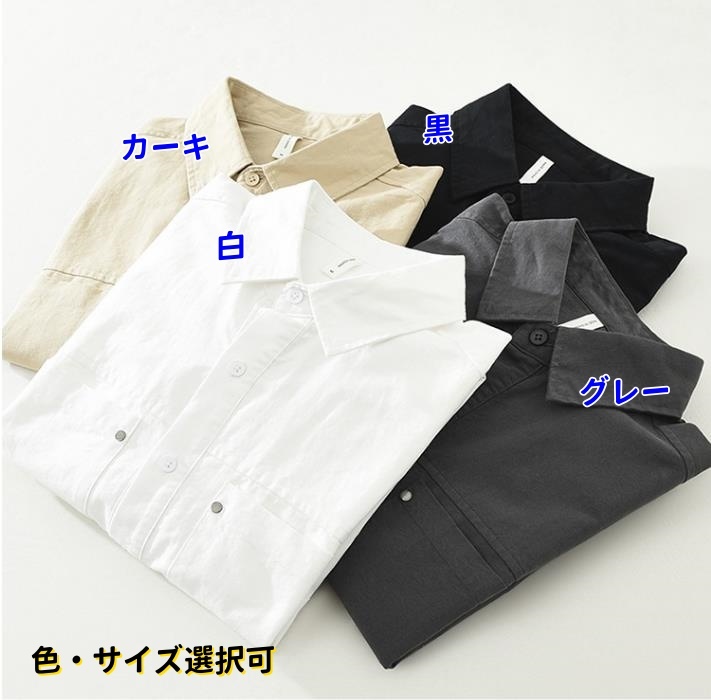 ワークシャツ 長袖シャツ シャツジャケット 新品★メンズ トップス カーゴシャツ 春秋服 カジュアルシャツ【M7861】白 2XL
