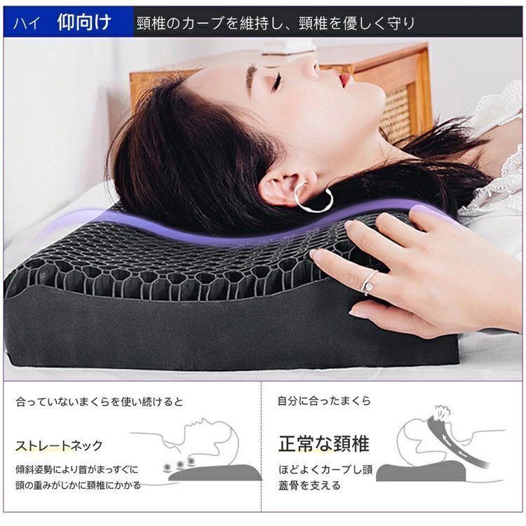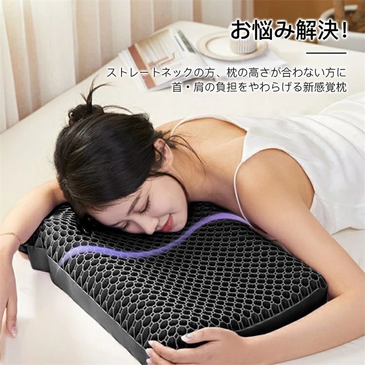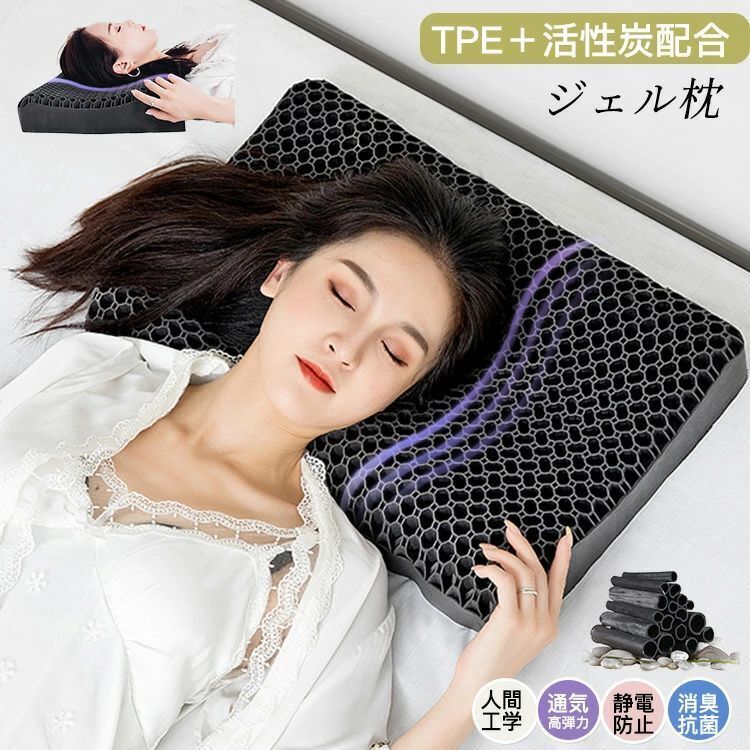 枕 通気性 抜群 横向き寝用枕 うつぶせ寝 柔らかい ジェル 首 寝返り 高弾力マクラ 肩こり 首こり 低反発まくら 体圧分散 TPEまくら