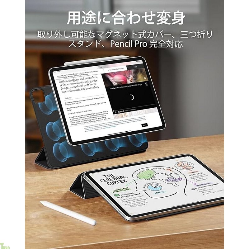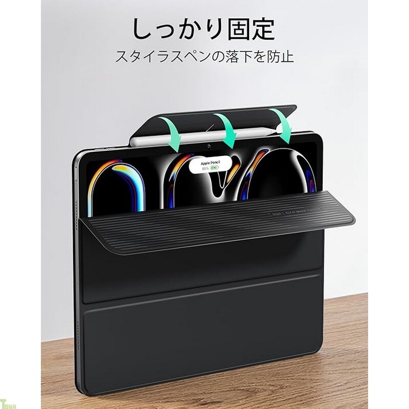 ブラック 三つ折り 強力マグネット吸着式 Pencil Pro / USB-C 対応 アイパッド プロ iPad Pro 13 インチ M5 2025 / M4 2024 ケース カバー