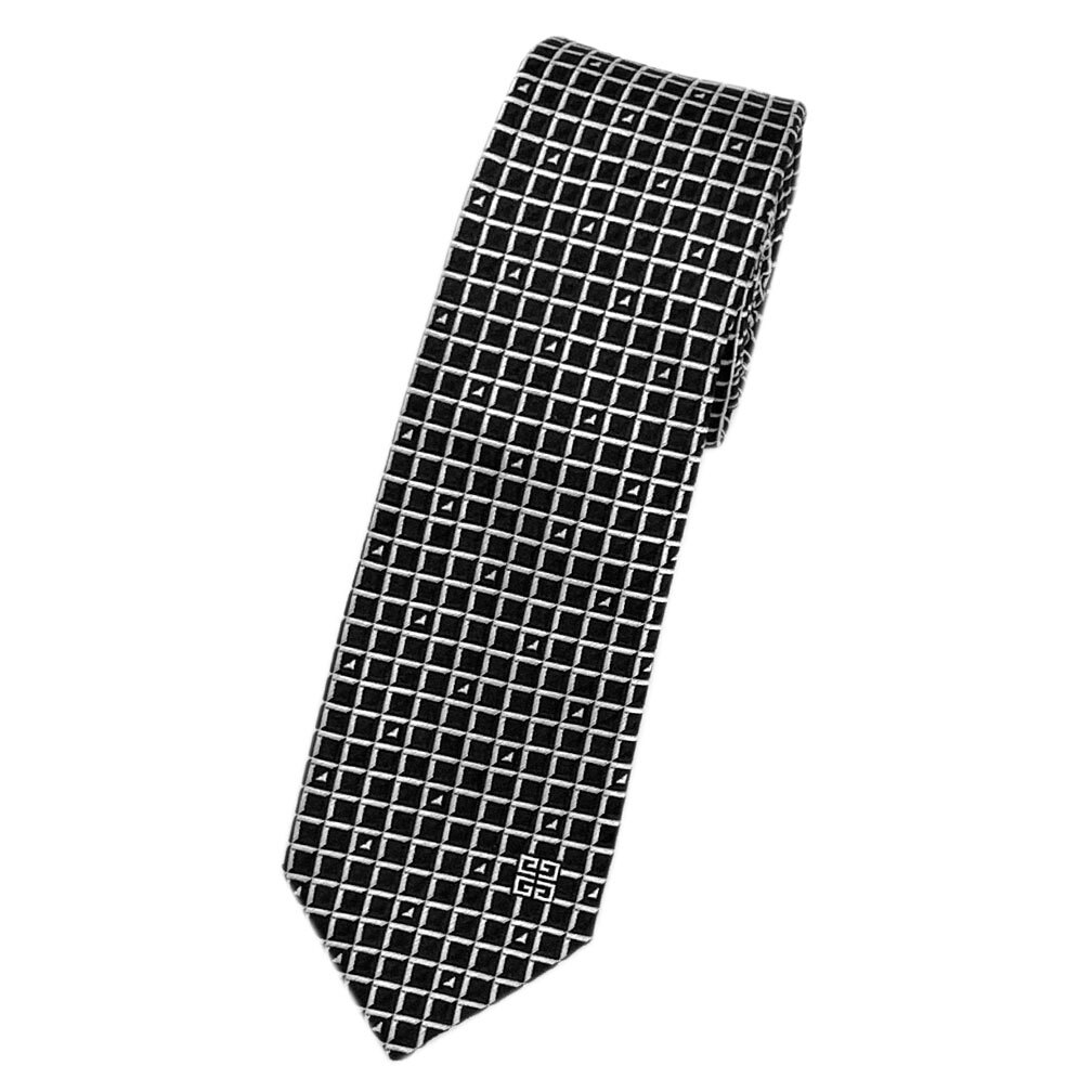 ジバンシィ ブランド ネクタイ BP1003 GIVENCHY ジバンシー メンズ シルク 100% 格子 チェック ブラック ホワイト 黒 40702