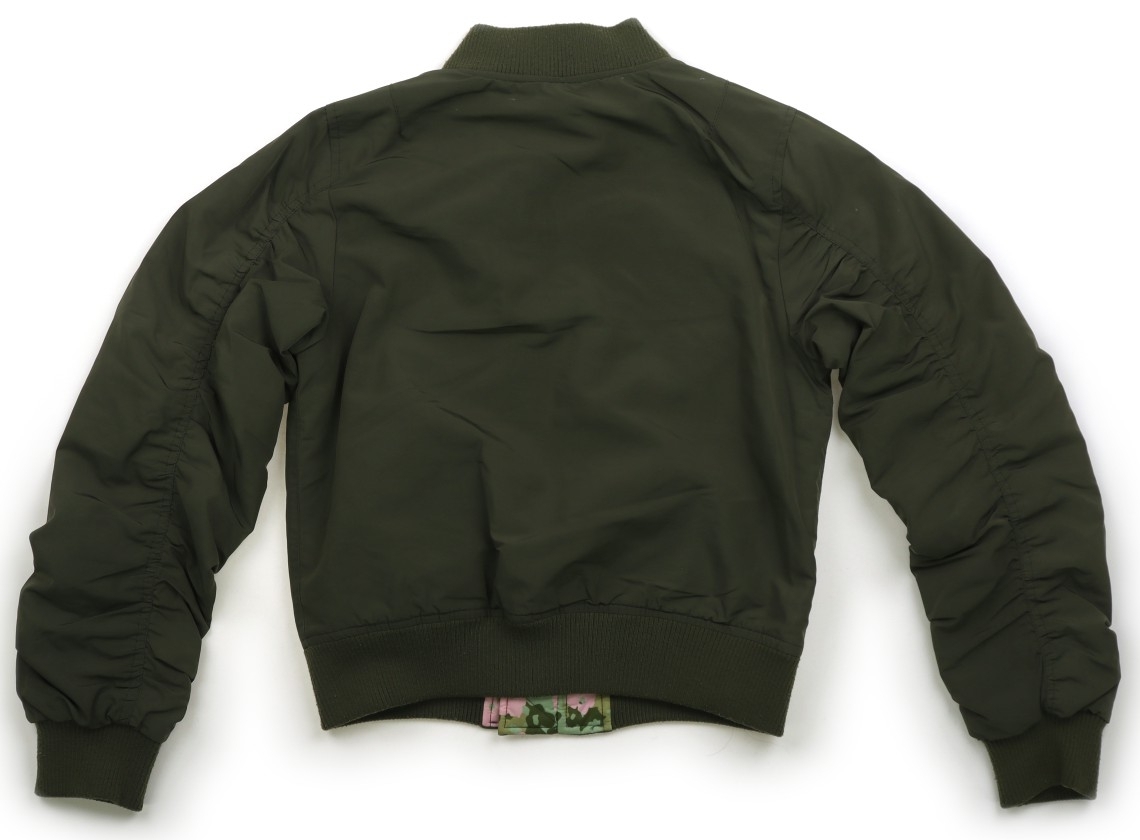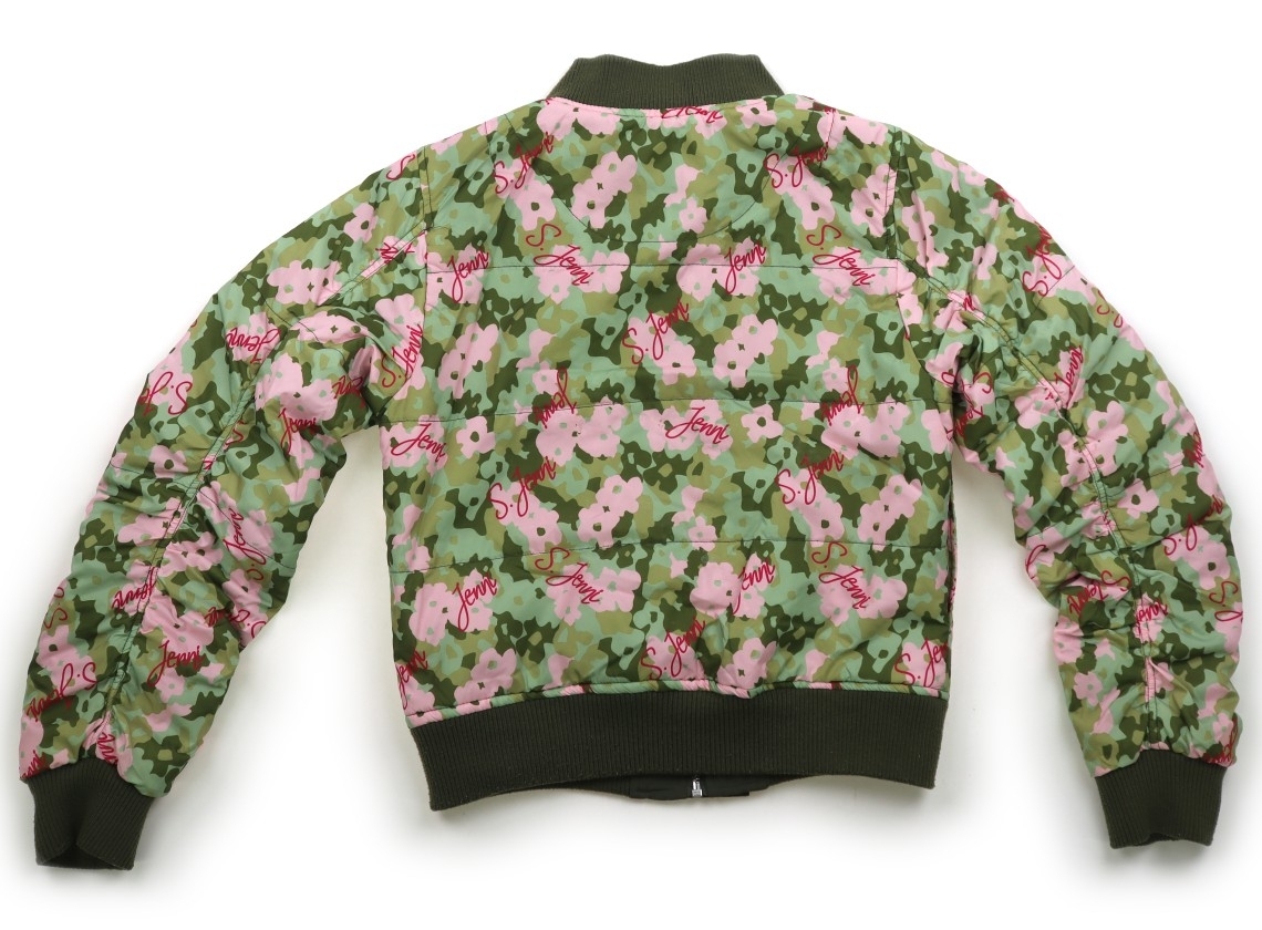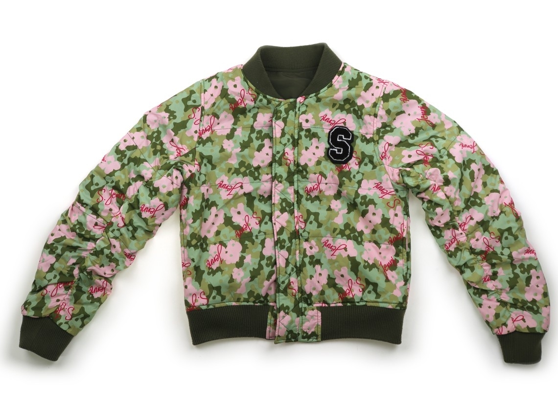 表地・裏地・中綿すべてポリエステル素材。無地と柄のリバーシブルで着られます。リブに毛玉、無地の胸元に薄いシミあり。柄面の背中付近に固い付着物が見られます。普段使いにいかがでしょうか。