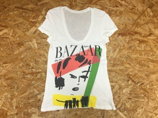 mighty fine フリーズショップ FREE'S SHOP USA製 ファッション雑誌 HARPER'S BAZZAR コラボ 半袖Tシャツ レディース M 白 です。