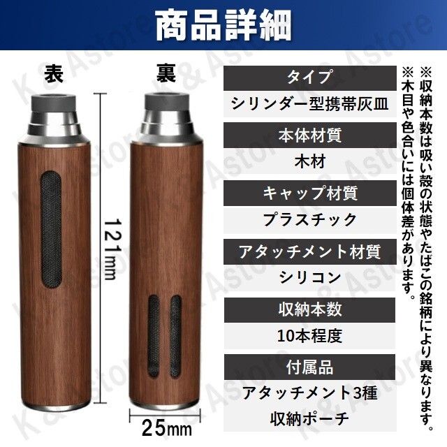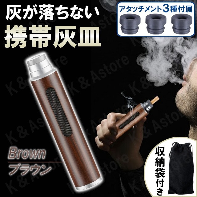 【匿名配送】携帯灰皿 ポータブル アッシュトレイ ポケット灰皿 紙タバコ用 木製 ウッド おしゃれ アタッチメント付き 収納袋付き ブラウン