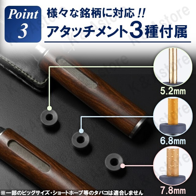 ■ 3種アタッチメント付属で幅広いタバコに対応