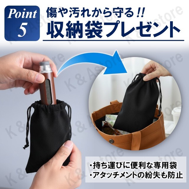 本体のキズを防ぎ、いつでも清潔に持ち運べる専用袋セットになっています。