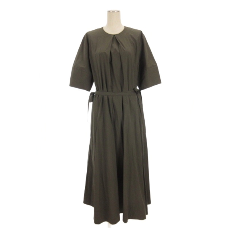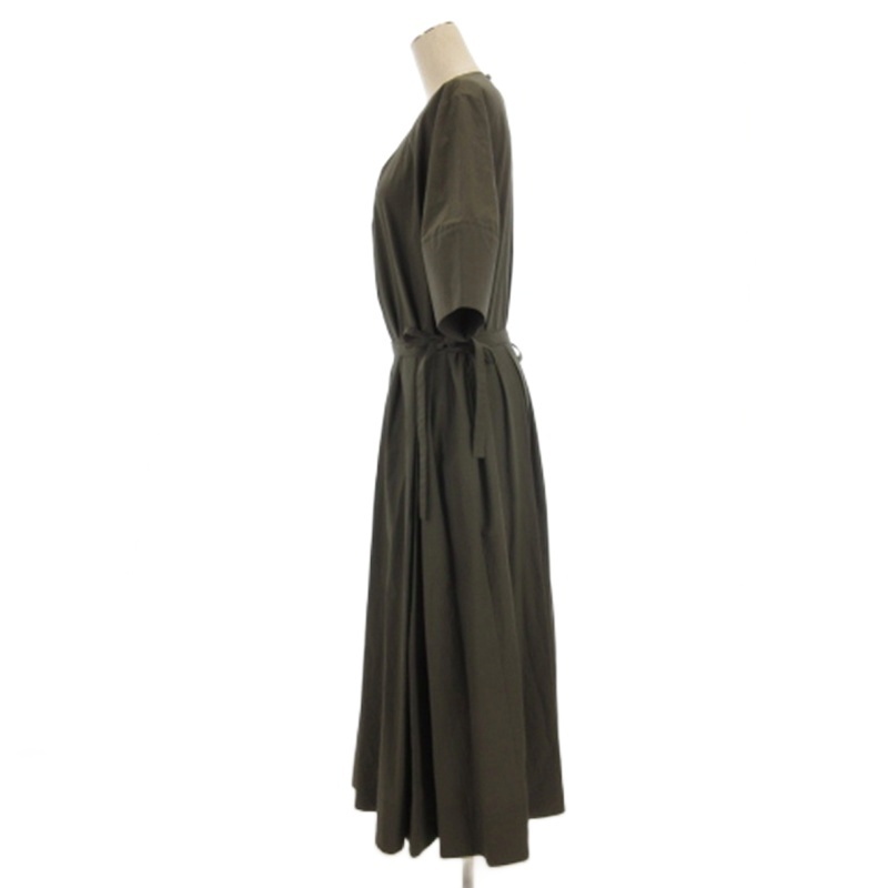 ジェイ&エムデヴィッドソン J&M Davidson フロントタックワンピース ロング 半袖 カーキ 6 レディース