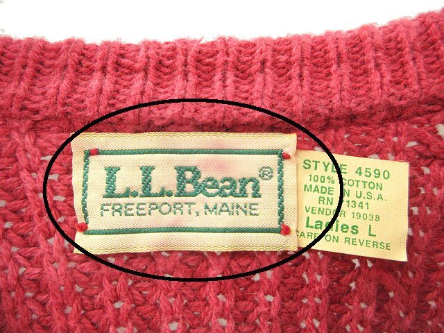 エルエルビーン L.L.BEAN 80s コットン クルーネック ニット STYLE4590 USA製 セーター L レッド 長袖 トップス ヴィンテージ