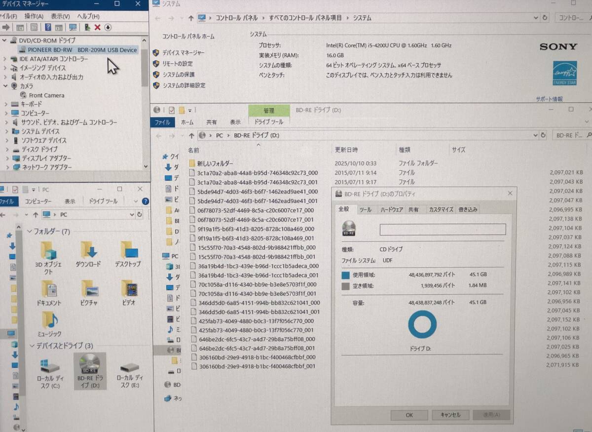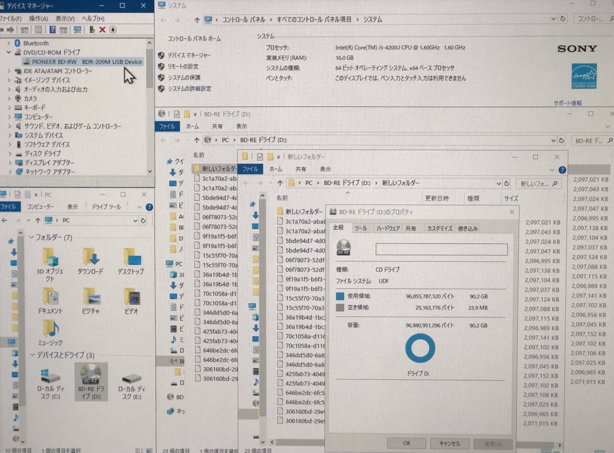また、市販BD洋画ソフト(BD2層)の再生、BD-REディスク(1層式と2層式と3層式)の読み込みと書き込み・(クイックでない)通常のフォーマットなどの検証もOKです。