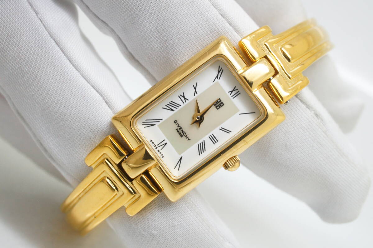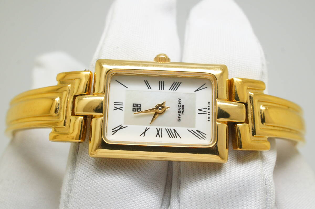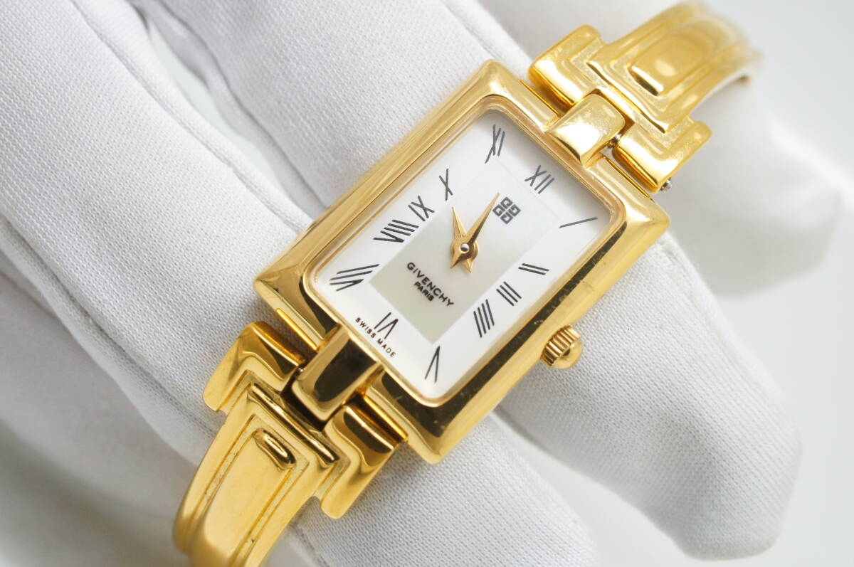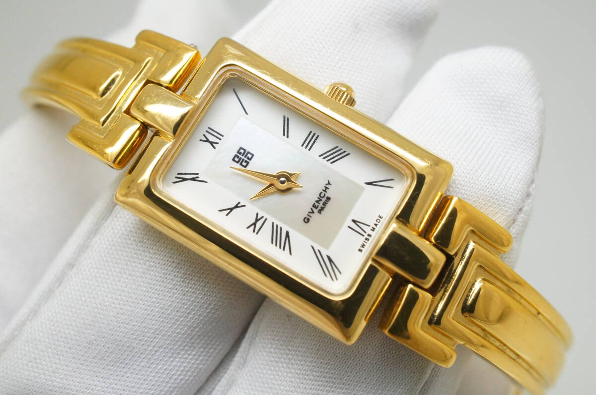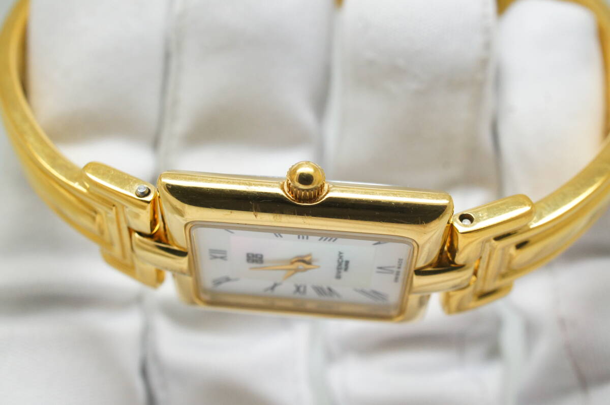 J147●作動良好 美品 GIVENCHY ジバンシィ MILLESIME REG MODEL シェル文字盤 スイス製 レディース腕時計 ゴールド金 クォーツ