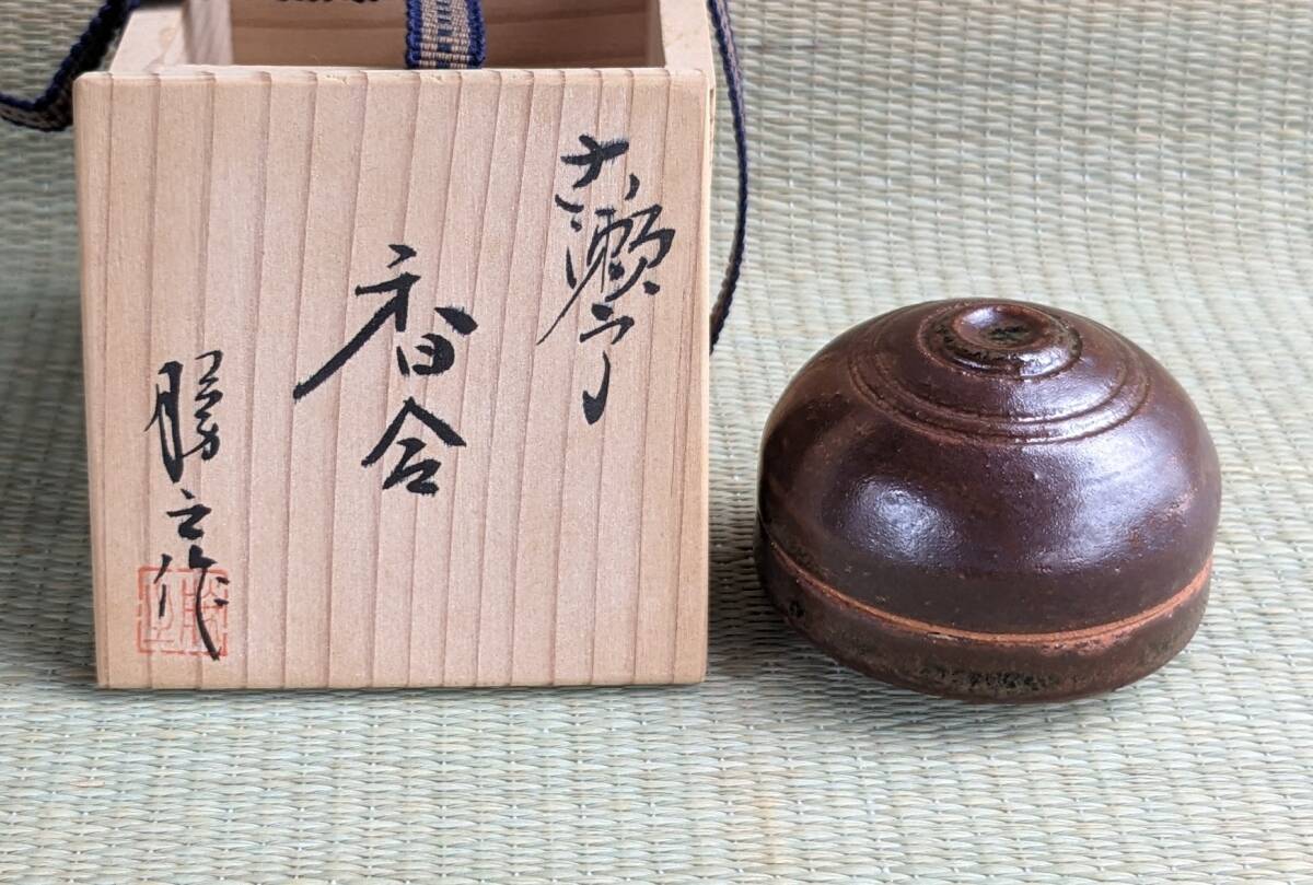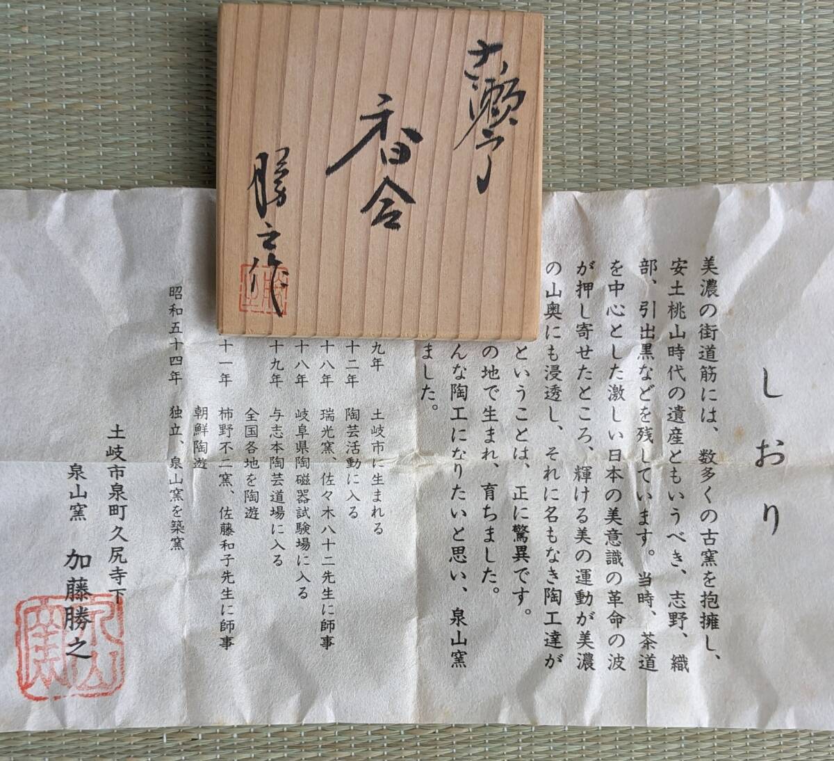 [雅] 古瀬戸宝珠香合 [加藤勝之作] 共箱 栞付き 未使用 茶道具 炭道具 炭点前 桑柄箸