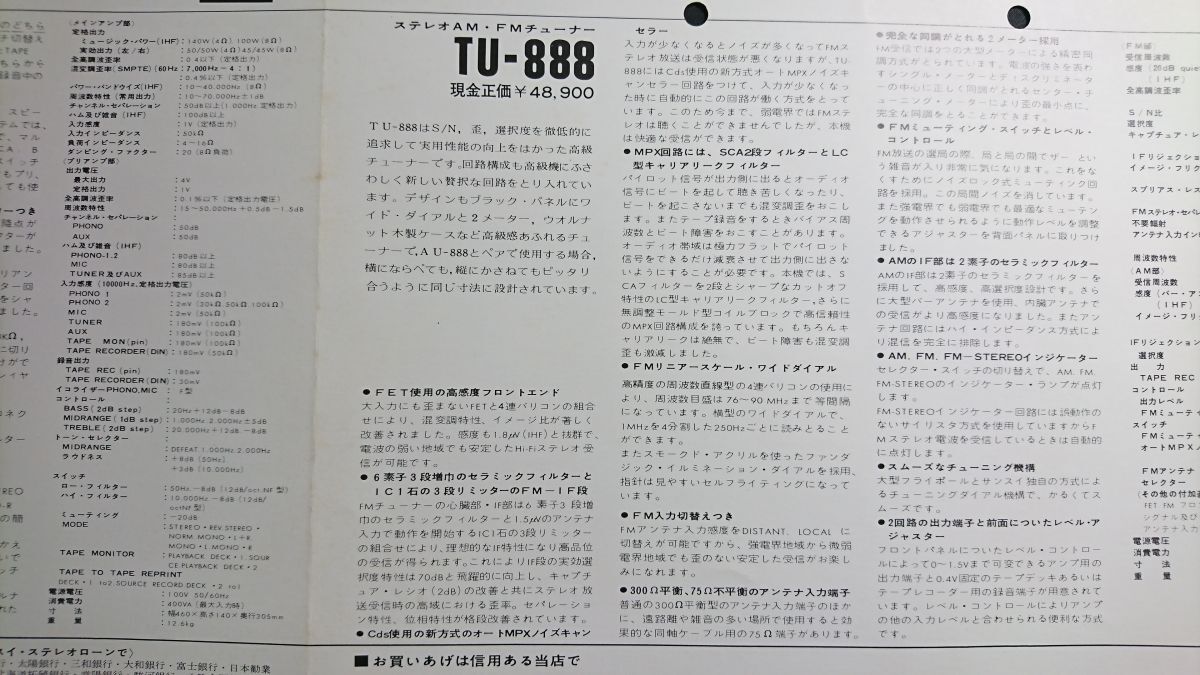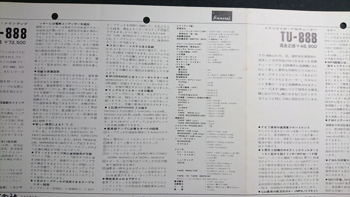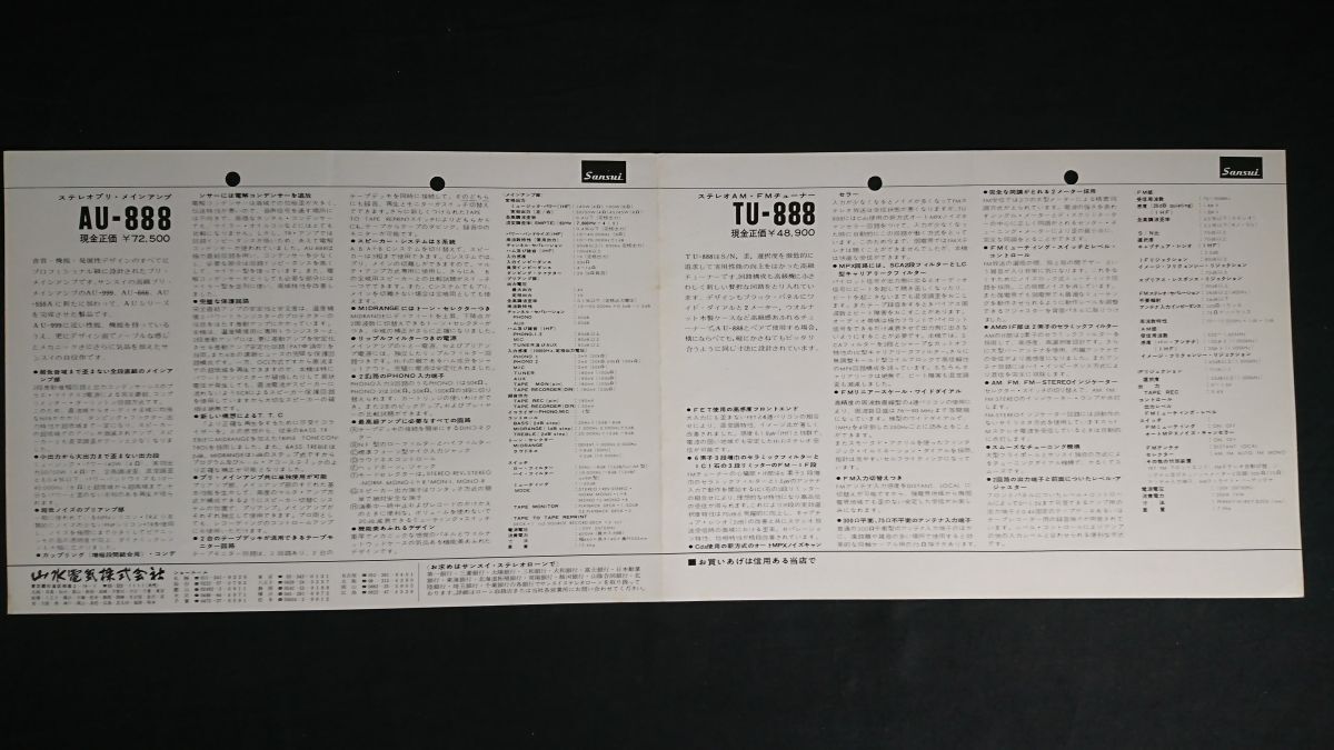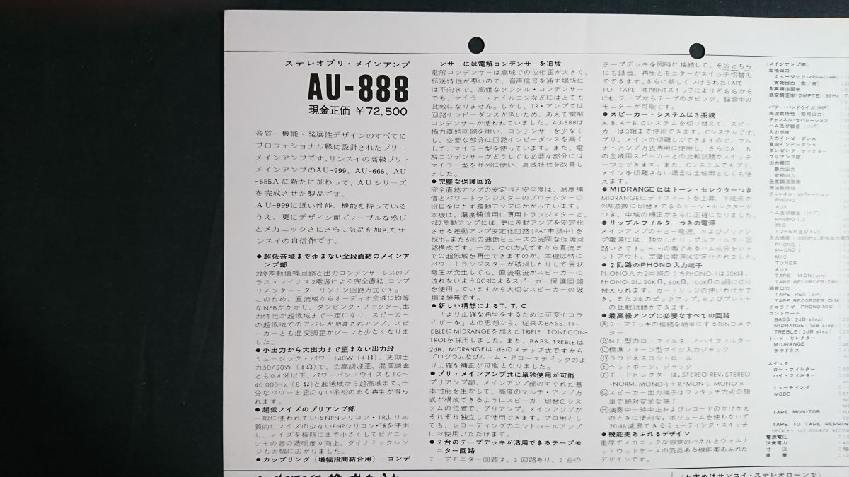 | 【昭和レトロ】『SANSUI(サンスイ) ステレオ プリメイン アンプ AU-888/ステレオ チューナー TU-888カタログ』1971年頃 山水気株式会社 | |