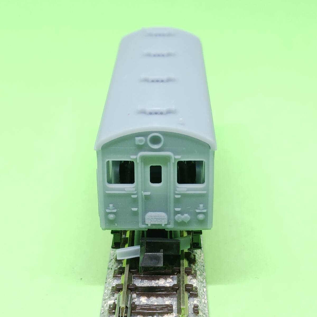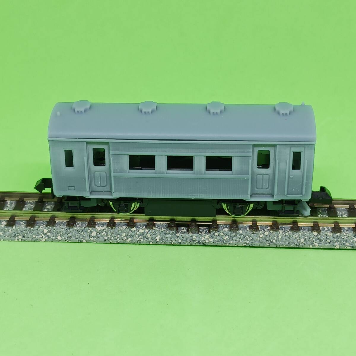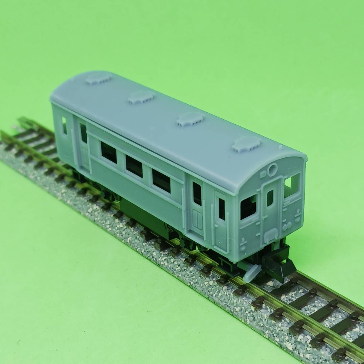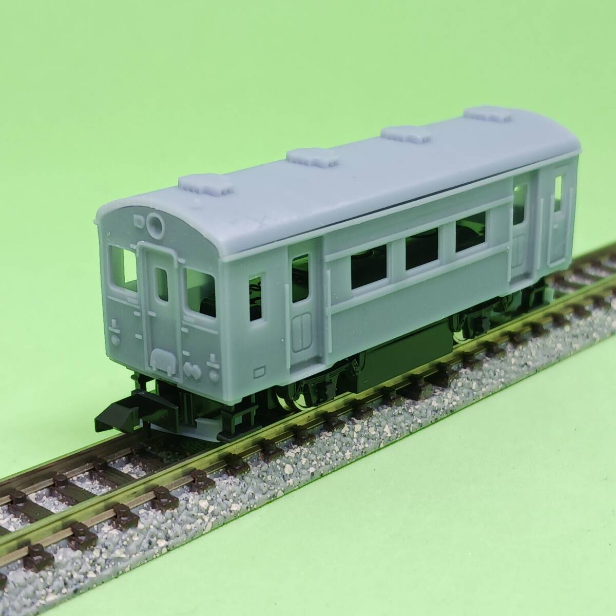 国鉄キハ08をモデルにしたミニ気動車、Nゲージ車体キットです。katoのチビ客車用動力ユニットに合わせてショートアレンジしています。上記動力ユニットを使用すると全長約62mmの2軸の小型ディーゼルカーになります。