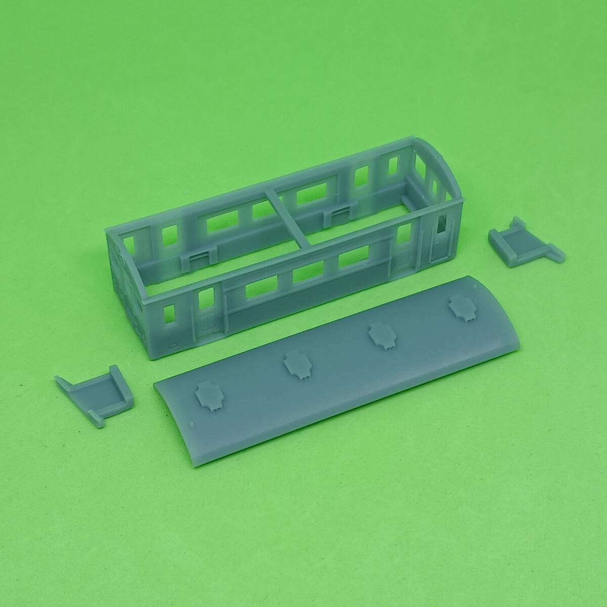床板及び台車は付属しません。動力台車はkatoチビ客車用動力ユニットが使用出来ます(動力ユニットの両端の手すりは切り落として下さい)。スノープラウはカプラーの下側に貼り付けて使用して下さい。