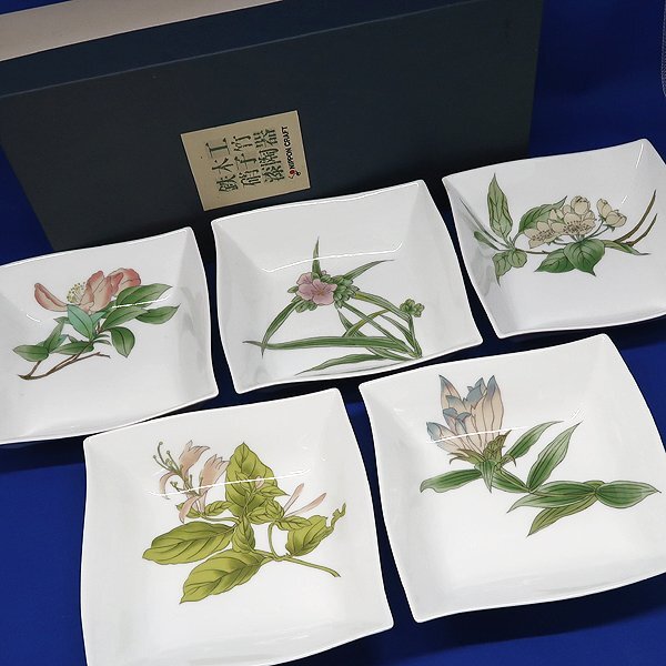 DKG★送料無料★ 未使用 NIPPON CRAFT 日本クラフト 五草花 スクエアプレート 角小鉢 5枚 スクエア プレート 食器 皿 四角 角 小鉢