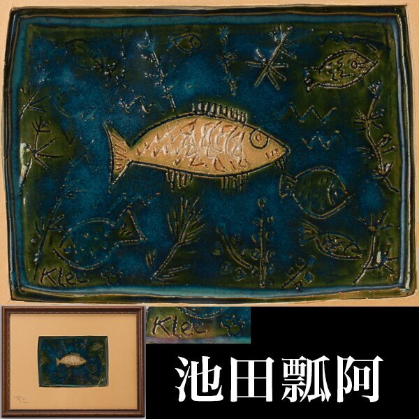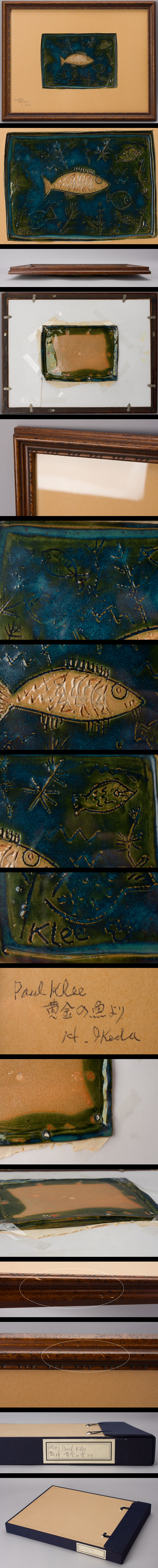 | 二代池田瓢阿の陶板。パウル・クレー「黄金の魚」の写しのようです。 たとう箱あり。真作保証。 陶板に、傷・直しございません。 額は、裏板が失われています。 額はアタリ、スレ等あります。 状態・詳細は、画像でご確認お願いいたします。 |