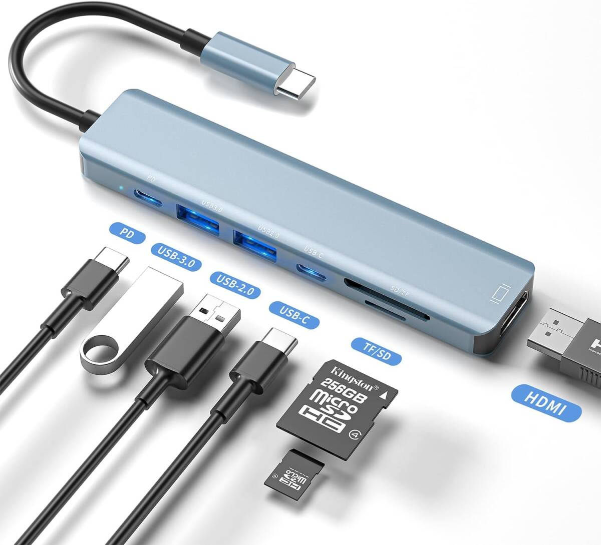 • 本usb c ハブはHDMI(4K 30Hz)ポート*1、USB3.0/USB2.0ポート*1、USB-C*1、USB PD対応Type-C*1、SD&TFカードスロット*1が搭載されています。単一のUSB-Cポートを7つの異なるポートに拡張し、ポート不足問題を完璧に解決します。ノートPCまたはデスクトップPCのUSB-Aポート一つで、7ポートまで接続可能となります。PD100Wフルスピード充電し、5Gbps高速データ転送し、4K HDMI高画質画面出力し、1Gbps高速イーサネット接続し、TFおよびSDカードをサポートことができます。