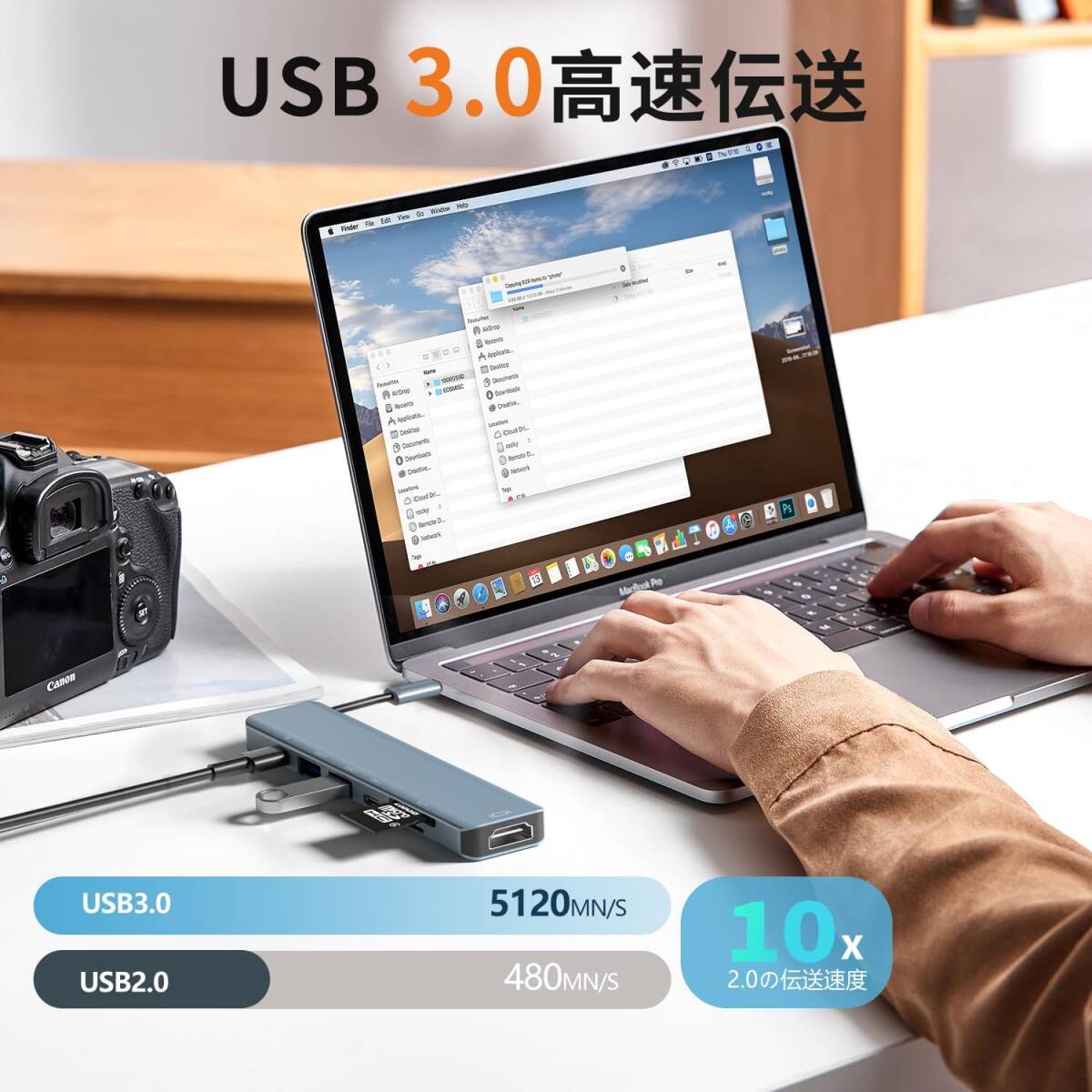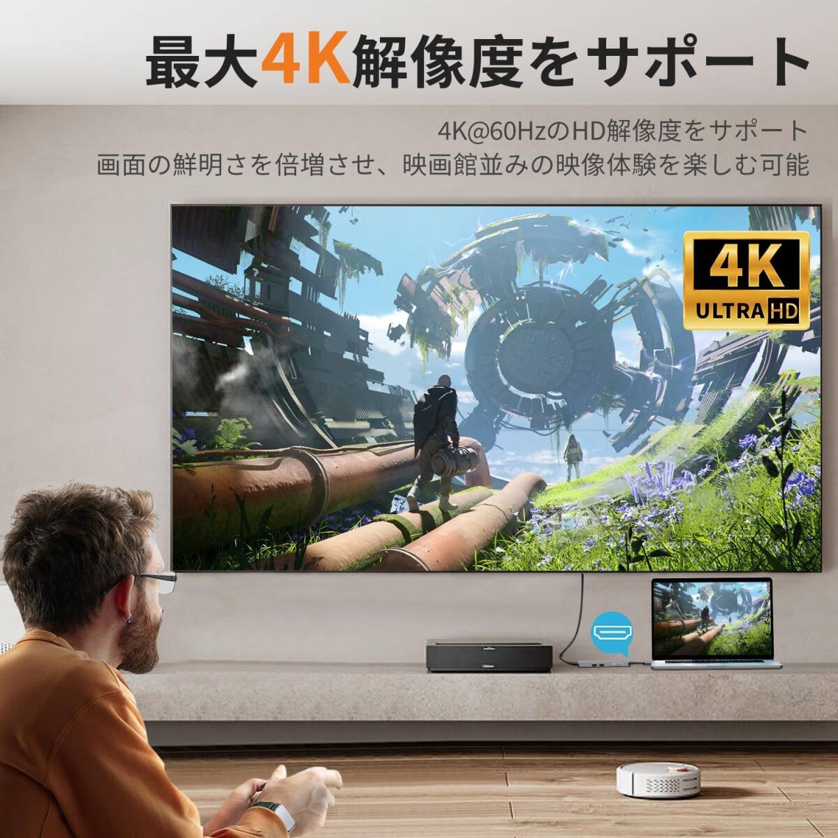• 【高画質:鮮やかな4Kディスプレイに対応】usb hub HDMIポートの最大解像度は4k @(3840x2160p)30hz、鮮やかでリアルな画像は、4K UHD、フルHD 1080p、3Dビデオ/ファイル、オーディオ/ビデオ出力、ミラーリング、拡張モードをサポートし、臨場感あふれる体験を提供します。鮮明に画面をミラーリングしたり拡張したりすることができるだけでなく、音声と映像出力、ミラーモードと拡張モード両方も対応します。ノートパソコンをテレビ、モニター、プロジェクターに直接接続すれば、画面が広くなり、作業効率が向上します。