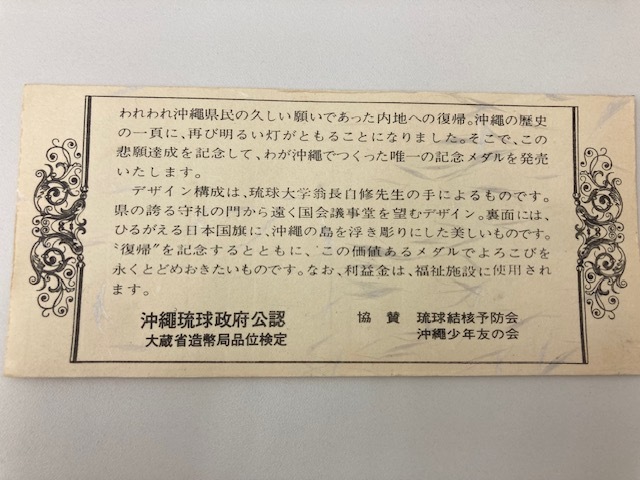| 【激レア】沖縄復帰記念メダル 銅メダル 琉球政府公認 琉球結核予防シール 当時品 首里城 日本政府 コレクション 534 | |||